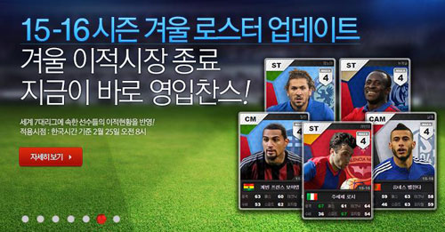 NHNºí·¢ÇÈ(´ëÇ¥ ±ÇÇõÁØ)ÀÌ °³¹ßÇÏ°í ³×À̹ö ½ºÆ÷Ã÷¸¦ ÅëÇØ ¼ºñ½ºµÇ´Â <Dzº¼µ¥ÀÌ>°¡ 2015-2016 À¯·´Ã౸ °Ü¿ï ÀÌÀû½ÃÀåÀ» ¹Ý¿µÇÑ ¡®·Î½ºÅÍ(Roster) ¾÷µ¥ÀÌÆ®¡¯¸¦ ½Ç½ÃÇß´Ù°í 25ÀÏ ¹àÇû´Ù.