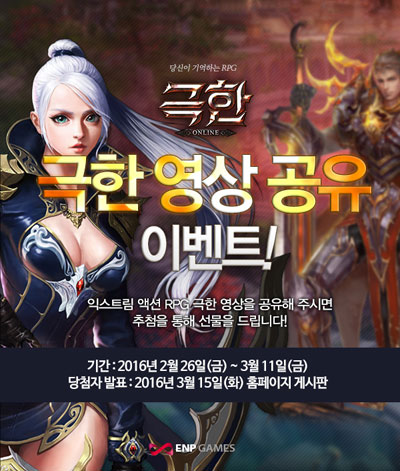 Á¦   ¸ñ : [ÀÌ¿£ÇǰÔÀÓÁî] ¸íǰ 3D À¥ MMORPG ¡®±ØÇÑ¡¯ ȨÆäÀÌÁö ¿ÀÇ 4Â÷ À̺¥Æ® ½Ç½Ã