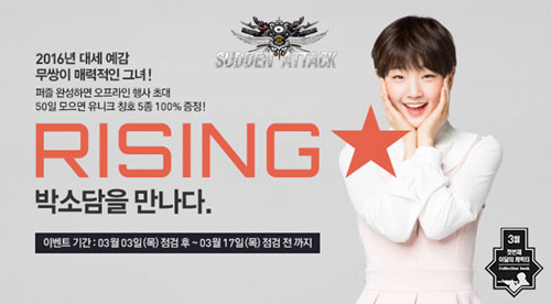 ¢ß³Ø½¼(´ëÇ¥ ¹ÚÁö¿ø)Àº 3ÀÏ ³Ø½¼ÁöƼ¢ß(´ëÇ¥ ±èÁ¤ÁØ)°¡ °³¹ßÇÑ ´ëÇѹα¹ NO.1 FPS °ÔÀÓ ¡®¼µç¾îÅ᯿¡ Àα⠿©¹è¿ì ¹Ú¼Ò´ã ij¸¯Å͸¦ Ãâ½ÃÇß´Ù.