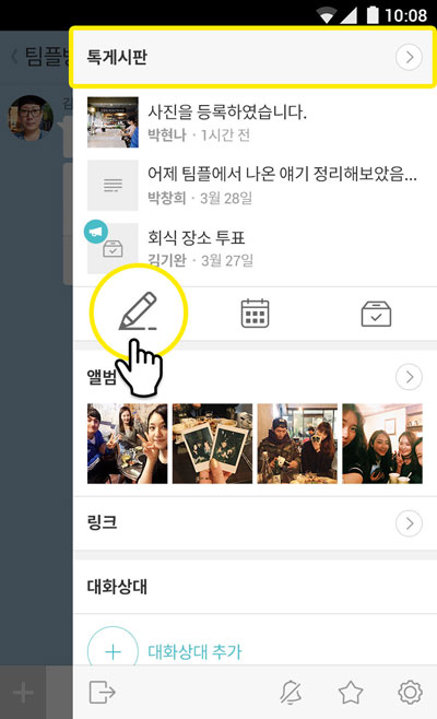 īī¿À(´ëÇ¥ ÀÓÁöÈÆ)°¡ īī¿ÀÅå äÆÃ¹æ¿¡ »çÁø, µ¿¿µ»ó, ÆÄÀÏ Ã·ºÎ°¡ °¡´ÉÇÑ °Ô½ÃÆÇ µî ¸ðÀÓ °ü¸®¿¡ ÇÊ¿äÇÑ µµ±¸µéÀ» Áö¿ø °­È­Çϰí. ´ëÈ­ÀÇ Áö¼Ó¼º°ú Æí¸®¼ºÀ» ÇÑÃþ ´õ ³ôÀδÙ.
