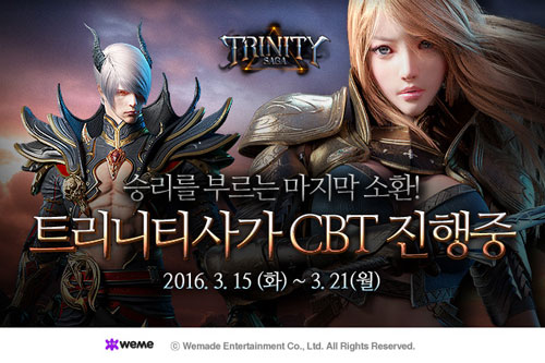 <Æ®¸®´ÏƼ»ç°¡> °ÔÀÓ ¼Ò°³ ¹× CBT¿¡ ´ëÇÑ ÀÚ¼¼ÇÑ ³»¿ëÀº ºê·£µå »çÀÌÆ® (http://trinitysaga.wemade.com) ¹× °ø½Ä Ä«Æä(http://cafe.naver.com/trinitysaga) ¿¡¼ È®ÀÎÇÒ ¼ö ÀÖ´Ù.