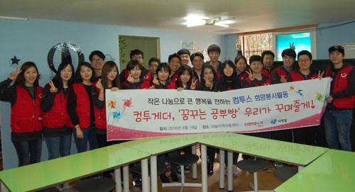 ¸ð¹ÙÀÏ °ÔÀÓ ±â¾÷ ÄÄÅõ½º[078340](´ëÇ¥ ¼Ûº´ÁØ, www.com2us.com)´Â Áö¿ª¾Æµ¿¼¾ÅÍ ½Ã¼³À» º¸¼öÇÏ°í °øºÎ¹æÀ» »õ·Î ´ÜÀåÇϴµ¥ ÇÊ¿äÇÑ ±â±ÝÀ» ÈÄ¿øÇϰí, »ç³» ºÀ»ç´Ü ÄÄÅõ°Ô´õ°¡ ¾Æµ¿¼¾Å͸¦ ¹æ¹®ÇØ °øºÎ¹æÀÇ È¯°æÀ» °³¼±ÇÏ´Â ºÀ»çȰµ¿¿¡ Âü¿©Çß´Ù°í ¹àÇû´Ù.