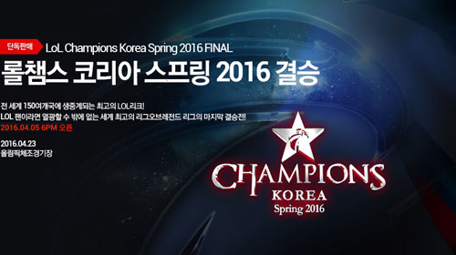 NHNƼÄϸµÅ©(´ëÇ¥ ¾çÁÖÀÏ)´Â 5ÀÏ ¿ÀÈÄ 6½ÃºÎÅÍ °ÔÀÓä³Î OGNÀÌ ÁÖÃÖÇÏ´Â < ·Ñ èÇǾ𽺠ÄÚ¸®¾Æ ½ºÇÁ¸µ 2016(LoL Champions Korea Spring 2016, ÀÌÇÏ ·Ñ轺 ½ºÇÁ¸µ)>ÀÇ °á½ÂÀü ƼÄÏÀ» ´Üµ¶ ÆÇ¸ÅÇÑ´Ù.