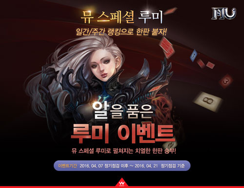 À¥Á¨Àº ¿À´Ã(4¿ù 7ÀÏ)ºÎÅÍ 4¿ù 21ÀϱîÁö ¾à 2ÁÖ µ¿¾È ¡®¹Â ½ºÆä¼È ·ç¹Ì ·©Å·Àü¡¯À» ½ÃÀÛÇÑ´Ù. ¡®¹Â ·ç¹Ì¡¯´Â ¸ó½ºÅ͸¦ »ç³ÉÇØ ¼öÁýÇÑ Ä«µå Á¶°¢À¸·Î Á¤ÇØÁø Ä«µåÀÇ Â¦À» ¸ÂÃß´Â ¡®¹Â ¿Â¶óÀΡ¯ ³» ¹Ì´Ï°ÔÀÓÀÌ´Ù.