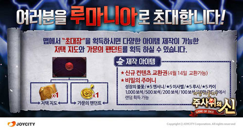 À̹ø À̺¥Æ®´Â ¸ÊÀ» ÅëÇØ Áö±ÞµÇ´Â ¡®ÃÊ´ëÀ塯À» ¸ð¾Æ ¡®ÀúÅà Áöµµ¡¯¿Í ¡®°¡¹®ÀÇ ÆÒ´øÆ®¡¯¸¦ Á¦ÀÛÇÏ´Â ¹æ½ÄÀ¸·Î ÁøÇàµÇ¸ç, ¼ö·®¿¡ µû¶ó ¡®50¸¸ °ñµå(°ÔÀÓ¸Ó´Ï)¡¯, ¡®º¸¼® 1000°³(°ÔÀÓij½¬)¡¯, ¡®5¼º ij¸¯ÅÍ¡¯ µî ǪÁüÇÑ ¾ÆÀÌÅÛÀ» ȹµæÇÒ ¼ö ÀÖ´Ù.