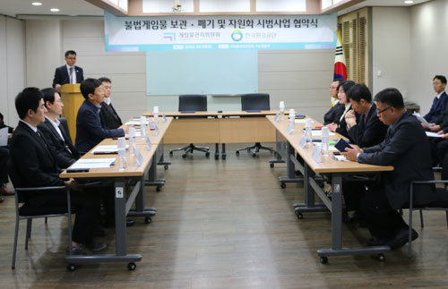 °ÔÀÓ¹°°ü¸®À§¿øÈ¸(À§¿øÀå ¿©¸í¼÷, ÀÌÇÏ ¡®°ÔÀÓÀ§¡¯)¿Í Çѱ¹È¯°æ°ø´Ü(ÀÌ»çÀå À̽ÃÁø, ÀÌÇÏ ¡®°ø´Ü¡¯)Àº 8ÀÏ ±Ý¿äÀÏ ¿ÀÈÄ3½Ã °ÔÀÓÀ§ ¼öµµ±Ç°ü¸®Ã»»ç ȸÀǽǿ¡¼ ºÒ¹ý°ÔÀÓ±âÀÇ ¼ö°Å¿Í º¸°ü¿¡ °üÇÑ ¾÷¹«Çù¾à(MOU)À» ü°áÇß´Ù.