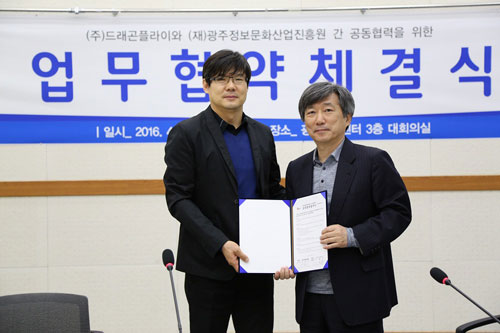 µå·¡°ïÇöóÀÌ´Â Áö³ 4¿ù 7ÀÏ ±¤ÁÖÁ¤º¸¹®È»ê¾÷ÁøÈï¿ø(¿øÀå ÀÌÁ¤Çö, ÀÌÇÏ ±¤ÁÖÁøÈï¿ø)°ú ¾÷¹« Çù¾à½ÄÀ» ¸¶Ä¡°í ±¤ÁÖCGI¼¾ÅÍ¿¡ ¡®µå·¡°ïÇöóÀÌ VR CENTER¡¯¸¦ ¼³¸³ÇÏ¿´À¸¸ç ü°¨Çü VR°ÔÀÓ °³¹ßÀ» °ñÀÚ·Î ÇÑ ÇÁ·ÎÁ§Æ®¸¦ Ãß°¡ÇØ VR°ÔÀÓ »ç¾÷¿¡ ÈûÀ» ½ÇÀ» ¿¹Á¤ÀÌ´Ù.