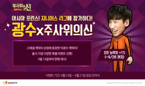 Á¶ÀÌ½ÃÆ¼(´ëÇ¥ Á¶¼º¿ø)´Â ¸ð¹ÙÀÏ º¸µå°ÔÀÓ ¡®ÁÖ»çÀ§ÀÇ ½Å¡¯¿¡ ±¹³»¸¦ ºñ·ÔÇØ Áß±¹, µ¿³²¾Æ µîÁö¿¡¼ Å« Àα⸦ ¾ò°í ÀÖ´Â ¹è¿ì À̱¤¼ö¸¦ ¸ðƼºê·Î Á¦ÀÛÇÑ ½Å±Ô ij¸¯Å͸¦ Ãâ½ÃÇß´Ù°í 14ÀÏ ¹àÇû´Ù.