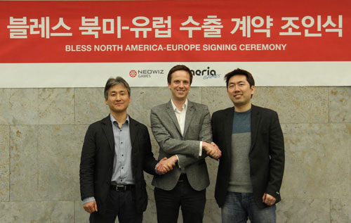 Áö³ 18ÀÏ ¾ç»ç´Â ³×¿ÀÀ§ÁîÆÇ±³Å¸¿ö¿¡¼ ºÏ¹Ì∙À¯·´ ½ÃÀåÀÇ ¼º°øÀû ¼ºñ½º¸¦ À§ÇÑ ¼öÃâ °è¾à Á¶ÀνÄÀ» ÁøÇàÇß´Ù. À̳¯ Á¶ÀνĿ¡¼ ¾ç»ç ´ëÇ¥´Â ¡®ºí·¹½º¡¯°¡ ±Û·Î¹ú MMORPG·Î ¹ßÀüÇØ ³ª°¥ ¼ö ÀÖµµ·Ï ¾Æ³¦¾ø´Â Áö¿øÀ» ÇØ ³ª°¥ °ÍÀ» ¾à¼ÓÇß´Ù.