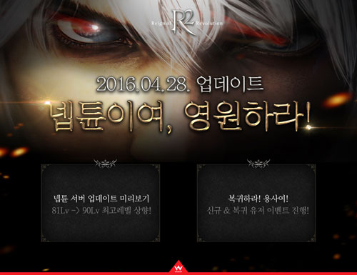 À¥Á¨ ¡®R2¡¯ÀÇ ¡®½Å±Ô/º¹±Íȸ¿ø¡¯ À̺¥Æ® ¹× ¡®³ÜƪÀÌ¿© ¿µ¿øÇ϶ó!¡¯ ¾÷µ¥ÀÌÆ® Á¤º¸¿¡ ´ëÇÑ º¸´Ù ÀÚ¼¼ÇÑ »çÇ×Àº ¡®R2¡¯ÀÇ °ø½Ä ȨÆäÀÌÁö(http://r2.webzen.co.kr)¸¦ ÅëÇØ È®ÀÎÇÒ ¼ö ÀÖ´Ù.