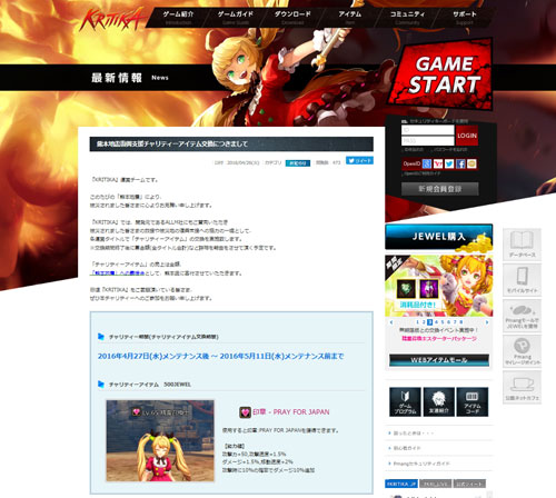 Å©¸®Æ¼Ä« ¿Â¶óÀÎÀÇ ÀϺ» ¼ºñ½º¸¦ ´ã´çÇϰí ÀÖ´Â °ÔÀÓ¿ÂÀº ÀϺ»À» ÀÀ¿øÇÏ´Â ¡®Pray for Japan¡¯ ÀÎÀåÀ» °ÔÀÓ ³»¿¡¼ ÆÇ¸ÅÇÏ°í ¹ß»ýÇÑ ¼öÀÍ±Ý Àü¾×À» ±âºÎÇÒ ¹æÄ§ÀÌ´Ù.