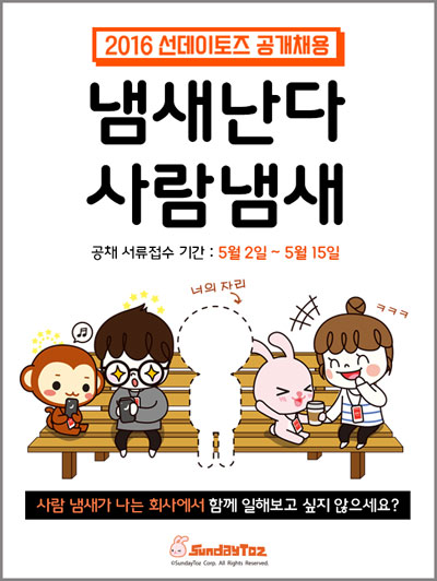 ¼±µ¥ÀÌÅäÁî(´ëÇ¥ ÀÌÁ¤¿õ, www.sundaytoz.com)°¡ â»ç ÀÌ·¡ ù ¹øÂ° ½ÅÀÔ/°æ·Â °øÃ¤¸¦ ½Ç½ÃÇÑ´Ù°í 2ÀÏ ¹àÇû´Ù.