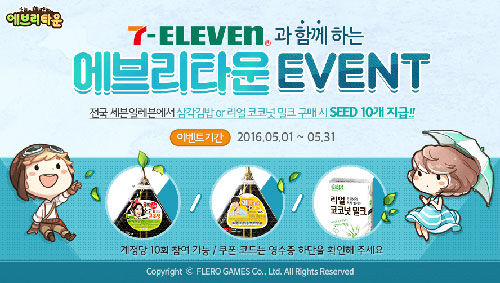 À̹ø Á¦ÈÞ À̺¥Æ®´Â 5¿ù 31ÀϱîÁö ÇÑ´Þ °£ ÁøÇàµÇ¸ç ÀÌ¿ëÀÚµéÀº ÄÚ¸®¾Æ¼¼ºì¿¡¼­ ¿î¿µ ÁßÀÎ ÆíÀÇÁ¡ '¼¼ºìÀÏ·¹ºì'¿¡¼­ »ï°¢±è¹ä, ¸®¾ó ÄÚÄÚ³Ó ¹ÐÅ© ±¸¸Å ÈÄ ¿µ¼öÁõ ÇÏ´Ü¿¡ ÀμâµÈ ÄíÆù ¹øÈ£¸¦ ÀÔ·ÂÇϸé <¿¡ºê¸®Å¸¿î> SEED(°ÔÀÓ¸Ó´Ï) 10°³¸¦ ¹ÞÀ» ¼ö ÀÖ´Ù.