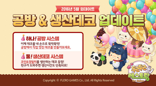 ¢ßÀ§¸ÞÀ̵忣ÅÍÅ×ÀÎ¸ÕÆ®(´ëÇ¥ ÀåÇö±¹)ÀÇ °è¿È¸»ç ¢ßÇ÷¹·Î°ÔÀÓÁî(´ëÇ¥ ÀÌÈ£´ë)¿¡¼ °³¹ß ¹× ¼ºñ½ºÇÏ´Â < µÎ±ÙµÎ±Ù ·¹½ºÅä¶û for Kakao>°¡ 3ÀÏ(È), ½Å±Ô ½Ã½ºÅÛ ¹× ÄÜÅÙÃ÷ ¾÷µ¥ÀÌÆ®¸¦ ½Ç½ÃÇß´Ù.