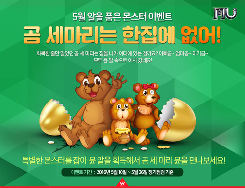 À¥Á¨Àº ¾îÁ¦(5¿ù 10ÀÏ) ¡®¹Â ¿Â¶óÀΡ¯¿¡ ¡®¾Æºü°õ¡¯, ¡®¾ö¸¶°õ¡¯, ¡®¾Ö±â°õ¡¯ µî ¼¼ °¡Áö ½Å±Ô ¡®¹Ã¡¯À» Ãß°¡Çϰí, ¿À´Â 5¿ù 26ÀϱîÁö ƯÁ¤ ¸ó½ºÅ͸¦ »ç³ÉÇÏ¸é ½Å±Ô ¡®¹Ã¡¯°ú °ÔÀÓ ¾ÆÀÌÅÛÀ» ¾òÀ» ¼ö ÀÖ´Â ¡®¾ËÀ» ǰÀº ¸ó½ºÅÍ¡¯ À̺¥Æ®¸¦ ½ÃÀÛÇß´Ù.