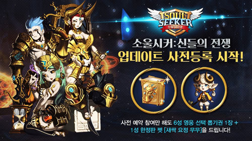 ÇÑÆí À̹ø ¡®½ÅµéÀÇ ÀüÀ ¾÷µ¥ÀÌÆ® »çÀüµî·ÏÀº ¿À´ÃºÎÅÍ ¾÷µ¥ÀÌÆ® ½ÃÀÛ Àü±îÁö »çÀüµî·Ï °ø½Ä ÆäÀÌÁö(http://event.withhive.com/soulcollector/evt_893/ko)¸¦ ÅëÇØ¼­ Âü¿©ÇÒ ¼ö ÀÖ´Ù. ½Å±Ô, ±âÁ¸ À¯Àú ¸ðµÎ Âü¿© °¡´ÉÇϸç, ¸ðµç »çÀüµî·Ï Âü¿©ÀÚ¿¡°Ô´Â 6¼º ¿µ¿õ ¼±Åà »Ì±â±Ç°ú ÇÑÁ¤ÆÇ Æê µîÀÌ ¹«·á·Î Áö±ÞµÈ´Ù.