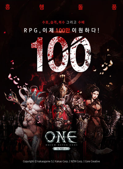 À̹ø ¡®¿ø(O.N.E) for Kakao¡¯ÀÇ »çÀü¿¹¾à 100¸¸ µ¹ÆÄ´Â īī¿À°ÔÀÓÀ» ÅëÇØ Ãâ½ÃµÈ RPG »ç»ó ÃÖÃÊ·Î ´Þ¼ºÇÑ ±â·ÏÀ¸·Î, ¡®¼öÈ£¡¯, ¡®½À°Ý¡¯, ¡®º¹¼ö¡¯ÀÇ ¼¼ °¡Áö Ű¿öµå Áß½ÉÀÇ Â÷º°ÈµÈ ÄÜÅÙÃ÷¿Í À¯Àú°£ Ä¡¿ÇÑ °ø¹æ¿¡ ÃÊÁ¡À» µÐ µ¶Æ¯ÇÑ °ÔÀÓ¼ºÀÌ À¯Àúµé¿¡°Ô ¾îÇÊÇ߱⠶§¹®À̶ó°í īī¿À´Â ¹àÇû´Ù.