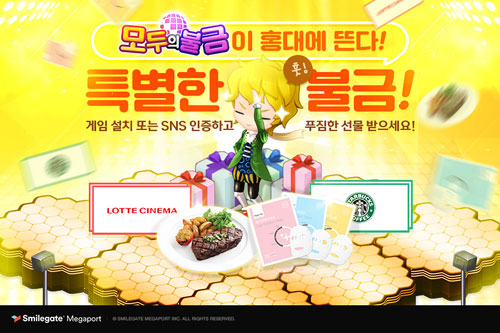 À̹ø Çà»ç´Â ¼¿ï½Ã ¸¶Æ÷±¸ È«´ëÀÔ±¸¿ª Àα٠¾î¿ï¸¶´ç·Î¿¡¼ ¾à 5½Ã°£¿¡ °ÉÃÄ ÁøÇàµÉ ¿¹Á¤À¸·Î, ÇöÀåÀ» ã´Â ¸ðµç À̵鿡°Ô 1¸¸¿ø »ó´çÀÇ ¾ÆÀÌÅÛ ÄíÆùÀÌ ´ã±ä ºÎ並 Á¦°øÇÑ´Ù. ¶Ç, ·ê·¿ À̺¥Æ®¸¦ ÅëÇØ ¡®·Ôµ¥½Ã³×¸¶ ¿¹¸Å±Ç¡¯, ¡®½ºÅ¸¹÷½º »óǰ±Ç¡¯, ¡®ÈÄÁîÈÄ µ¥Àϸ® ¸¶½ºÅ©ÆÑ¡¯, ¡®Ä³¸¯ÅÍ ¼Ø»çÅÁ¡¯ µîµµ ¼±¹°ÇÑ´Ù. ·ê·¿ À̺¥Æ®´Â °ÔÀÓÀ» ¼³Ä¡Çϰųª ¡®#¸ðµÎÀǺұݡ¯ ÇØ½Ãű׸¦ ´Þ¾Æ ÇöÀå »çÁøÀ» °¢Á¾ SNS¿¡ ¿Ã¸± °æ¿ì Âü¿©ÇÒ ¼ö ÀÖ´Ù.