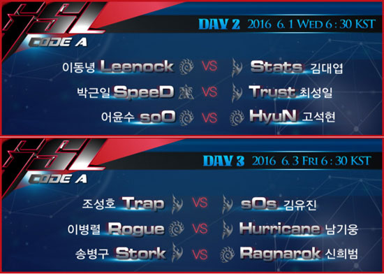 À̹ø ÁÖ °æ±â¿¡´Â Áö³ 5¿ù ÁøÇàµÈ ¡®2016 ½ºÅ¸Å©·¡ÇÁÆ® II Å©·Î½º ÆÄÀ̳Π½ÃÁð1¡¯ÀÇ ¿ì½ÂÀÚ ±è´ë¿±(kt Rolster_Stats)°ú ¡®2015 WCS ±Û·Î¹ú ÆÄÀ̳Ρ¯ÀÇ ¿ì½ÂÀÚ ±èÀ¯Áø(Jin Air GreenWings_sOs) µî ³»·Î¶óÇÏ´Â ¼±¼öµéÀÌ ÃâÀüÇØ ÄÚµåS ÁøÃâÀ» µÎ°í Ä¡¿ÇÑ °æÀïÀ» ¹úÀÏ ¿¹Á¤ÀÌ´Ù.