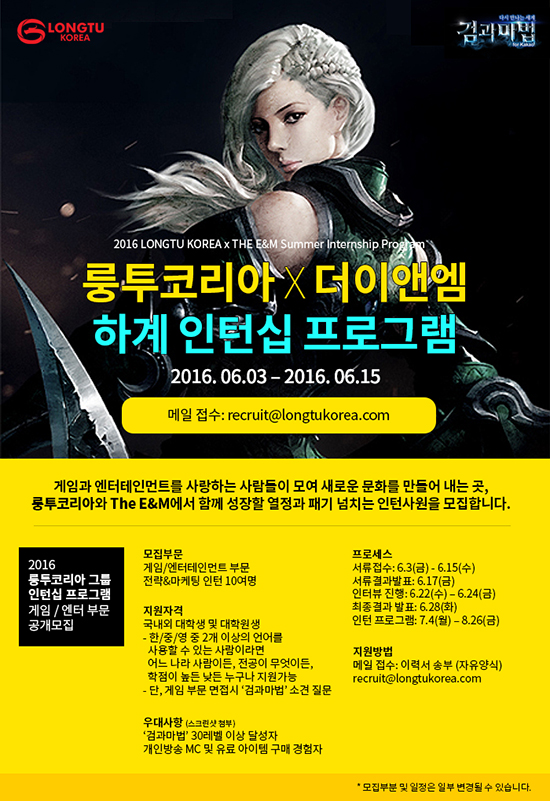 ·îÅõÄÚ¸®¾Æ´Â ÀÚȸ»ç The E&M°ú ÇÔ²² ¿À´Â 15ÀϱîÁö °ÔÀÓ ¹× ¿£ÅÍÅ×ÀÎ¸ÕÆ® ºÐ¾ß¿¡ °ü½ÉÀÌ ³ôÀº ±¹³»¿Ü ´ëÇÐ • ´ëÇпø»ýÀ» ´ë»óÀ¸·Î 2016³â Çϰè ÀÎÅÏ½Ê ÇÁ·Î±×·¥ Âü°¡ÀÚ¸¦ ¸ðÁýÇÑ´Ù°í 3ÀÏ ¹àÇû´Ù.