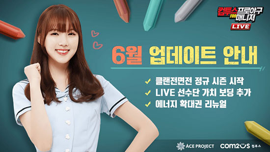 ¸ð¹ÙÀÏ °ÔÀÓ ±â¾÷ ÄÄÅõ½º´Â Àڻ簡 ÆÛºí¸®½ÌÇÏ°í ¿¡À̽ºÇÁ·ÎÁ§Æ®°¡ °³¹ßÇÑ ¡®ÄÄÅõ½ºÇÁ·Î¾ß±¸ for ¸Å´ÏÀú LIVE(ÀÌÇÏ ¡®ÄÄÇÁ¸Å LIVE¡¯)¡¯¿¡¼ ¡®Å¬·£ Àü¸éÀü(CvC)¡¯ Á¤±Ô ½ÃÁðÀ» ¿ÀÇÂÇÏ´Â µî ¾÷µ¥ÀÌÆ®¸¦ ÁøÇàÇß´Ù°í 30ÀÏ ¹àÇû´Ù. À̹ø ¾÷µ¥ÀÌÆ®¸¦ ÅëÇØ °ÔÀÓ ³» Ŭ·£³¢¸® ´ë±Ô¸ð °æ±â¸¦ ÆîÃÄ ½ÂºÎ¸¦ °Ü·ç´Â ¡®Å¬·£ Àü¸éÀü¡¯ÀÌ Á¤±Ô ½ÃÁðÀ» ½ÃÀÛÇÑ´Ù. ¡®Å¬·£ Àü¸éÀü¡¯Àº ÀÚ½ÅÀÇ ¼±¼ö´Ü Áß¿¡¼ ÀÓÀÇ·Î ¼±ÅÃµÈ 3¸íÀÇ Åõ¼ö Áß ÇÑ ¸íÀ» ¼±¹ß Åõ¼ö·Î ³»¼¼¿ö »ó´ë Ŭ·£ÀÇ ¼±¼ö´Ü°ú °æ±â¸¦ ÆîÄ¡´Â ÄÜÅÙÃ÷·Î, ¸¹Àº °æ±â¸¦ ½Â¸®ÇÑ Å¬·£ÀÌ ÃÖÁ¾ ¿ì½ÂÀ» Â÷ÁöÇÏ°Ô µÈ´Ù. 'ÄÄÇÁ¸Å LIVE'´Â 'Ŭ·£ Àü¸éÀü'ÀÇ Á¤±Ô ½ÃÁðÀ» ¿ÀÇÂÇϸç À¯ÀúµéÀÌ ´õ¿í ´õ ¾ÈÁ¤ÀûÀ̰í Àü·«ÀûÀÎ ÆÀÇ÷¹À̸¦ Áñ±æ ¼ö ÀÖµµ·Ï ÆíÀǼº°ú °ÔÀÓ¼ºÀ» °ÈÇß´Ù. °æ±â ¼±ÅÃÀÇ ÆøÀ» ³ÐÇô '10ÀΠŬ·£'°ú '20ÀΠŬ·£'À¸·Î ±¸ºÐµÇ¾î °æ±â°¡ ÁøÇàµÇ¸ç, ¿ì½Â ½Ã¿¡´Â CvC Æ÷ÀÎÆ®°¡ Á¦°øµÈ´Ù. ÀÌ¿Í ÇÔ²² ºñ½ÁÇÑ ¼öÁØÀÇ Å¬·£ÀÌ ¸ÂºÙ¾î ¸ÅÄ¡ Á¾·á±îÁö ´õ¿í ±ä¹Ú°¨ ³ÑÄ¡°í Èï¹Ì·Î¿î °æ±â°¡ °¡´ÉÇϵµ·Ï Ŭ·£ ¸ÅĪ ¹æ½ÄÀ» Á¤±³ÈÇß´Ù. À̹ۿ¡ ÀüÀÏ KBO ¸®±×ÀÇ ½ÇÁ¦ °æ±â °á°ú°¡ ¹Ý¿µµÇ¾î Çö½Ç°¨ ³ÑÄ¡´Â °æ±â¸¦ Áñ±æ ¼ö ÀÖ´Â ¡®¶óÀÌºê ¸ðµå¡¯¿¡ ¼±¼ö´ÜÀÇ °¡Ä¡¿¡ µû¸¥ ¼øÀ§¸¦ È®ÀÎÇÒ ¼ö ÀÖ´Â ¡®LIVE ·©Å·¡¯ÀÌ Ãß°¡µÆ´Ù. À̸¦ ÅëÇØ ÀÚ½ÅÀÇ ·©Å·°ú ÇÔ²² ´Ù¸¥ À¯ÀúÀÇ ¶óÀÌºê ¼±¼ö´Ü Á¤º¸¸¦ ÇÑ´«¿¡ ÆÄ¾ÇÇÒ ¼ö ÀÖ´Ù. ¶Ç ¿©¸§À» ¸Â¾Æ °ÔÀÓ ³» ¸ÞÀÎ Å׸¶°¡ º¯°æµÇ¾î ¹ß¶öÇÏ°í ½Ã¿øÇÑ ÇÏ°è ½ºÄð·èÀ» ÀÔÀº °É±×·ì '¿©ÀÚÄ£±¸'ÀÇ ¸ð½ÀÀ» ¸¸³ªº¼ ¼ö ÀÖ´Ù. ÇÑÆí, 'ÄÄÇÁ¸Å'´Â Áö³ 2013³â Ãâ½Ã ÀÌÈÄ »ç½ÇÀûÀÎ ±¸´Ü ¿î¿µÀÇ Àç¹Ì·Î ²ÙÁØÇÑ Àα⸦ ¾ò°í ÀÖ´Â ´ëÇ¥ÀûÀÎ ¸ð¹ÙÀÏ ¾ß±¸ ¸Å´ÏÁö¸ÕÆ® °ÔÀÓÀÌ´Ù. Áö³ 4¿ù KBO¸®±× °³¸·°ú ÇÔ²² ÁøÇàÇÑ ¾÷µ¥ÀÌÆ® ÀÌÈÄ ¡®¶óÀÌºê ¸ðµå ÆÀ¸ÅÄ¡¡¯ ¡®2016F½ÃÁð ¼±¼ö¡¯ µî ²ÙÁØÇÑ ÄÜÅÙÃ÷ Ãß°¡·Î ¼º°øÀûÀÎ ¼ºñ½º¸¦ ÁøÇà ÁßÀÌ´Ù. °ÔÀÓ°ú À̹ø ¾÷µ¥ÀÌÆ®¿¡ °üÇÑ ´õ¿í ÀÚ¼¼ÇÑ ³»¿ëÀº °ø½ÄÄ«Æä(http://cafe.naver.com/com2usmanager)¸¦ ÅëÇØ È®ÀÎÇÒ ¼ö ÀÖ´Ù.