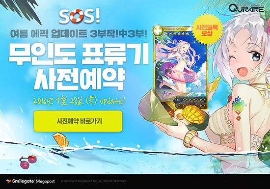 ½º¸¶ÀϰÔÀÌÆ® ¸Þ°¡Æ÷Æ®ÀÇ Â÷¼¼´ë Ä«µå ¹èƲ ¸ð¹ÙÀÏ RPG 'Å¥¶ó·¹: ¸¶¹ýµµ¼°ü(ÀÌÇÏ Å¥¶ó·¹)'ÀÌ ¿©¸§ ½ÃÁð ´ë¹Ì¸¦ Àå½ÄÇÒ ¿¡ÇÈ ¾÷µ¥ÀÌÆ®¸¦ ¾ÕµÎ°í »çÀüµî·Ï À̺¥Æ®¸¦ ÁøÇàÇÑ´Ù. À̹ø »çÀüµî·Ï À̺¥Æ®´Â ¿À´Â 28ÀÏ(¸ñ) ÁøÇà ¿¹Á¤ÀΠť¶ó·¹ ¿©¸§ ½ÃÁð ¿¡ÇÈ ¾÷µ¥ÀÌÆ® ¡®SOS! ¹«Àεµ Ç¥·ù±â¡¯¿¡ ¾Õ¼ À¯Àúµé¿¡°Ô dz¼ºÇÑ ÇýÅðú º¼°Å¸®, ¾÷µ¥ÀÌÆ® Á¤º¸¸¦ Á¦°øÇϱâ À§ÇØ ¸¶·ÃµÆÀ¸¸ç, °ø½Ä À̺¥Æ® ÆäÀÌÁö(http://event.playstove.com/event/preregist/qurareSOS)¿¡¼ È®ÀÎ ÇÒ ¼ö ÀÖ´Ù. »çÀüµî·Ï ½ÅûÀÚ Àü¿ø¿¡°Ô´Â ¡®SR+ 6¼º ¹«ÀεµÀÇ ¿¡µð½¼¡¯À» Áö±ÞÇϸç, Âü°¡ÀÚ Áß 10¸íÀ» ÃßÃ·ÇØ À̹ø ¾÷µ¥ÀÌÆ®¸¦ ±â³äÇØ Ưº° Á¦ÀÛÇÑ ÇÑÁ¤ÆÇ ¡®¼ö¿µº¹ »çÈñ º£°³Ä¿¹ö¡¯¸¦ ÁõÁ¤ÇÑ´Ù. ½º¸¶ÀϰÔÀÌÆ® ¸Þ°¡Æ÷Æ®´Â °ð ÁøÇàµÉ ¡®SOS! ¹«Àεµ Ç¥·ù±â¡¯ ¾÷µ¥ÀÌÆ® ³»¿ëÀ» ¹Ì¸® ¸¸³ªº¼ ¼ö ÀÖ´Â ÇÁ·Î¸ð¼Ç ¿µ»ó(https://youtu.be/T-HhDz0Sttg)µµ °ø°³Çß´Ù. ¿µ»óÀº ¾à 1ºÐ¿© ºÐ·®À¸·Î, ¹«Àεµ¿¡ Ç¥·ùÇÏ°Ô µÈ Å¥¶ó·¹ÀÇ ´ëÇ¥ »ç¼ 3ÀιæÀÎ ¹Ì¿ì, ¼¿¶ó, µ¨ÇÉÀÌ ¿©¸§ÀÇ Áñ°Å¿òÀ» ¸¸³£ÇÏ´Â ¸ð½ÀÀ» ´ã¾Ò´Ù. û·®°¨ÀÌ ´À²¸Áö´Â ¾Æ¸§´Ù¿î ¹«Àεµ¸¦ ¹è°æÀ¸·Î »ç¼µéÀÇ ¼¶¼¼ÇÑ Ç¥Á¤°ú »ýµ¿°¨À» Áñ±æ ¼ö ÀÖ´Â °ÍÀÌ Æ¯Â¡ÀÌ´Ù. 'Å¥¶ó·¹: ¸¶¹ýµµ¼°ü'Àº ±¹³» ´ëÇ¥ Ä«µå ¹èƲ RPG·Î, ±¹³» ±¸±Û Ç÷¹À̸¦ ºñ·ÔÇØ ¾ÖÇà ¾Û½ºÅä¾î, ³×À̹ö ¾Û½ºÅä¾î, Ƽ½ºÅä¾î¿¡¼ ¹«·á·Î ´Ù¿î·Îµå ¹ÞÀ» ¼ö ÀÖ´Ù. °ÔÀÓ Á¤º¸ ¹× À̺¥Æ® µî °ÔÀÓ¿¡ °üÇÑ º¸´Ù ÀÚ¼¼ÇÑ ³»¿ëÀº °ÔÀÓ °ø½Ä Ä¿¹Â´ÏƼ(http://cafe.naver.com/qurare)¿¡¼ È®ÀÎÇÒ ¼ö ÀÖ´Ù.