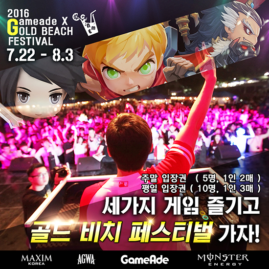 °ÔÀÓ¿¡À̵å (Gameade)´Â Àڻ簡 ¼ºñ½º ÁßÀÎ ¸ð¹ÙÀÏ °ÔÀÓ 3Á¾ (ÅǾîµåº¥Ã³, ¿¡¹ö: ½Ã°£ÀÇ Á¶°¢, »ï±¹¸ù)À¸·Î ¿©¸§À» ¸ÂÀÌÇØ ¡®°ÔÀÓ¿¡À̵å X °ñµåºñÄ¡ Æä½ºÆ¼¹ú À̺¥Æ®¡¯¸¦ ÁøÇàÇÑ´Ù°í ±ÝÀÏ (22ÀÏ) ¹àÇû´Ù. À̹ø À̺¥Æ®´Â ±ÝÀϺÎÅÍ 8¿ù 3ÀϱîÁö ÁøÇàÇÑ´Ù. 3Á¾ÀÇ °ÔÀÓÀÎ 'ÅǾîµåº¥Ã³'´Â ÇѼÕÄÁÆ®·ÑÀÇ ¹¦¹Ì¸¦ ´ã°í ÀÖ°í, '¿¡¹ö: ½Ã°£ÀÇ Á¶°¢'Àº ¾Æ±âÀÚ±âÇÑ ±×·¡ÇÈÀÇ ¾×¼ÇRPGÀ̸ç, ¸¶Áö¸·À¸·Î '»ï±¹¸ù'Àº °³¼º ³ÑÄ¡´Â »ï±¹Áö ij¸¯ÅͰ¡ ¸Å·ÂÀûÀÎ °ÍÀÌ Æ¯Â¡ÀÌ´Ù. À̹ø¿¡ °ÔÀÓ¿¡À̵尡 ÁغñÇÑ ¡®°ÔÀÓ¿¡À̵å X °ñµåºñÄ¡ Æä½ºÆ¼¹ú À̺¥Æ®¡¯´Â 3Á¾ÀÇ °ÔÀÓÀ» Ç÷¹ÀÌÇÏ°í Æ¯Á¤ ·¹º§À» ½ºÅ©¸°¼¦À¸·Î ÀÎÁõÇϸé Ãß÷À» ÁøÇàÇØ ¡®°ñµåºñÄ¡ Æä½ºÆ¼¹ú¡¯ ÀÔÀå±ÇÀ» ÁõÁ¤ÇÑ´Ù. ´ç÷ÀÚ¿¡°Ô´Â Áö±ÞµÇ´Â ÁÖ¸» ÀÔÀå±ÇÀº 1ÀÎ 2¸Å, ÆòÀÏ ÀÔÀå±ÇÀº 1ÀÎ 3¸ÅÀ̱⠶§¹®¿¡ Ä£±¸µé°ú ÇÔ²² Æä½ºÆ¼¹ú¿¡ Âü°¡ÇÒ ¼ö ÀÖ´Ù. ¡®°ñµåºñÄ¡ Æä½ºÆ¼¹ú¡¯Àº µ¿ÇØ¾È ÇØº¯¿¡¼ ¿¸®´Â Áö»óÃÖ´ë Ŭ·´ Æä½ºÆ¼¹ú·Î AGWA¿Í ¹Ì½º¸Æ½É°ú ÇÔ²²Çϴ ȲöÇÑ Æä½ºÆ¼¹úÀÌ´Ù. »Ó¸¸ ¾Æ´Ï¶ó ±¹³» ÃÖÁ¤»ó DJµéÀÌ Âü¿©Çϸç ÀÏÁ¤¿¡ µû¶ó ÈüÇÕÆÄÆ¼ ¹× Rock ÆÄƼµµ Áñ±æ ¼ö ÀÖ´Â ³«»êÇØ¼ö¿åÀå ¹é»çÀå¿¡ Áñ±â´Â 3,000¸í µ¿½Ã ¼ö¿ë °¡´ÉÇÑ ´ëÇü Ŭ·´ÀÌ´Ù. ¿öÅͽ½¶óÀ̵å Ç® ÆÄƼ¿Í °¨¹Ì·Î¿î ¹ö½ºÅ· °ø¿¬µµ Áñ±æ ¼ö ÀÖ´Ù. À̹ø ¡®°ÔÀÓ¿¡À̵å X °ñµåºñÄ¡ Æä½ºÆ¼¹ú¡¯ÀÇ Âü¿©¹æ¹ýÀº °ÔÀÓ¿¡ÀÌµå °ø½Ä ÆäÀ̽ººÏ ÆäÀÌÁö (https://www.facebook.com/%EA%B2%8C%EC%9E%84%EC%97%90%EC%9D%B4%EB%93%9C-210294482652735/) ȤÀº 3Á¾ÀÇ °ø½Ä ³×À̹ö Ä«Æä¸¦ ÅëÇØ ´õ ÀÚ¼¼ÇÑ »çÇ×À» È®ÀÎÇÒ ¼ö ÀÖ´Ù. °ÔÀÓÀ» ÁÁ¾ÆÇϰí Áñ±â´Â À¯Àú¶ó¸é ´©±¸³ª Âü¿©°¡ °¡´ÉÇϸç À̹ø À̺¥Æ®¸¦ ÅëÇØ Ä£±¸µé°ú ÇÔ²² ÀÌ»öÀûÀΠŬ·´ Æä½ºÆ¼¹úÀ» Áñ±æ ¼ö ÀÖ´Ù.