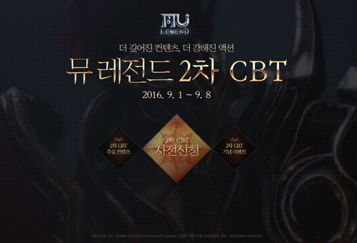 À¥Á¨Àº ¿À´Ã(7¿ù28ÀÏ) ÀÚ»çÀÇ PC MMORPG ¡®¹Â ·¹Àüµå¡¯ÀÇ 2Â÷ CBT (ºñ°ø°³Å×½ºÆ®, Closed Beta Test) Âü°¡ ÀÀ¸ð¸¦ À§ÇÑ Æ¼Àú»çÀÌÆ® (http://mulegend.webzen.co.kr/events/reservation/2ndcbt)¸¦ ¿°í 9¿ù1ÀÏ ½ÃÀ۵Ǵ ºñ°ø°³Å×½ºÆ® Âü°¡ ½Åû Á¢¼ö¸¦ ½ÃÀÛÇß´Ù.