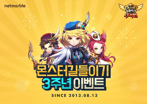 À̹ø Ưº° »çÀÌÆ®¿¡´Â ¡®¸ó½ºÅÍ ±æµéÀ̱⡯ 3ÁÖ³â È÷½ºÅ丮¸¦ ÀÎÆ÷±×·¡ÇÈÀ¸·Î º¼ ¼ö ÀÖ´Ù. 2013³â 8¿ù 13ÀÏ Ãâ½ÃÇÑ ÀÌ °ÔÀÓÀº ¸ð¹ÙÀÏ RPG À帣 ÃÖÃÊ·Î ±¸±ÛÇ÷¹ÀÌ, ¾ÖÇà ¾Û½ºÅä¾î ÃÖ°í¸ÅÃâ 1À§¸¦ ´Þ¼ºÇϸç Çѱ¹ ¸ð¹ÙÀÏ RPG ´ëÁßÈ¿¡ ÀÏÁ¶Çß´Ù.