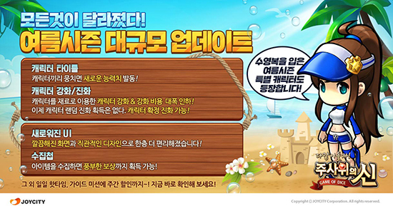 Á¶ÀÌ½ÃÆ¼´Â ÀÚü °³¹ßÇÑ ¸ð¹ÙÀÏ º¸µå°ÔÀÓ ¡®ÁÖ»çÀ§ÀÇ ½Å¡¯¿¡¼ ¿©¸§¸ÂÀÌ ½Å±Ô ¸Ê ¡®¾ÆÄí¾Æ¸¶¸°¡¯À» ¼±º¸¿´´Ù°í 4ÀÏ ÀüÇß´Ù. ½Å±Ô ¸Ê ¡®¾ÆÄí¾Æ¸¶¸°¡¯Àº ÇǼÁö ºÐÀ§±â¸¦ ¹°¾À ´À³¥ ¼ö ÀÖ´Â ¼ö¿µÀåÀ» ¹è°æÀ¸·Î Á¦À۵ƴÙ. ų·¯ Áö¿ªÀÇ ¹è¼ö¸¦ ³ôÀÏ ¼ö ÀÖ´Â ¡®µ¹ÇÉ ºÎ½ºÆ® ºí·Ï¡¯À» µµÀÔÇØ ÇÑÃþ ±äÀå°¨ ³ÑÄ¡´Â Ç÷¹À̸¦ ¿Ï¼ºÇßÀ¸¸ç, ºó ºÎµ¿»êÀ¸·Î Áï½Ã À̵¿ÇÒ ¼ö ÀÖµµ·Ï Ãâ¹ßÁö µµÂø È¿°ú¸¦ º¯°æÇØ ¼Óµµ°¨À» ³ô¿´´Ù. Çà¿î·Îµå¿¡ ¡®µµ½Ã°Å» ºí·Ï¡¯À» Ãß°¡ÇÑ °Íµµ Â÷º°ÈµÈ Àç¹Ì¿ä¼Ò´Ù. ÀÌ¿Í ÇÔ²² 3ÅÏ °£ ÇöÀç À§Ä¡ÇÑ ³» ºÎµ¿»êÀÇ ÅëÇà·á¿¡ ¼±ÅÃÇÑ µµ½ÃÀÇ ¹è¼ö¸¦ Ãß°¡·Î Àû¿ëÇÒ ¼ö ÀÖ´Â ½Å±Ô ½ºÅ³Ä«µå ¡®±â¹¦ÇÑ ½ºÆ÷À̵塯¿Í ÈÞ¾çÁö ¹æ¹® ½Ã 2Åϰ£ »ó´ë¹æÀ» ³» ºÎµ¿»êÀ¸·Î º¸³¾ ¼ö ÀÖ´Â ¡®µµÀü! ¹Ù´Ù³¬½Ã¡¯¸¦ Ãß°¡Çß´Ù. ÀÌ ¹Û¿¡µµ ½ÃÀÛ¸Ó´Ï º¸³Ê½º, ¼¼±ÝÇÒÀÎ µî ¹öÇÁ È¿°ú¸¦ ¾òÀ» ¼ö ÀÖ´Â ¡®Å¸ÀÌÆ² ½Ã½ºÅÛ¡¯°ú ¹Ì¼Ç ´Þ¼º¿¡ µû¶ó º¸»óÀ» ¹ÞÀ» ¼ö ÀÖ´Â ¡®°¡ÀÌµå ¹Ì¼Ç¡¯, ÇÏ·ç 3¹ø ¹ßµ¿µÇ´Â ¡®ÀÏÀÏ ÇÖŸÀÓ¡¯ µî ´Ù¾çÇÑ ÇýÅÃÀ» Á¦°øÇÏ´Â »õ·Î¿î ½Ã½ºÅÛÀ» µµÀÔÇß´Ù. ¸ð¹ÙÀÏ º¸µå°ÔÀÓ ¡®ÁÖ»çÀ§ÀÇ ½Å¡¯Àº ±¸±Û Ç÷¹ÀÌ ¹× ¾ÖÇà ¾Û½ºÅä¾î, ¿ø½ºÅä¾î¸¦ ÅëÇØ ´©±¸³ª ´Ù¿î·Îµå ¹ÞÀ» ¼ö ÀÖÀ¸¸ç, °ÔÀÓ¿¡ ´ëÇÑ »ó¼¼ÇÑ ³»¿ëÀº °ø½Ä ȨÆäÀÌÁö(http://god.joycity.com)¿¡¼ È®ÀÎÇÒ ¼ö ÀÖ´Ù.