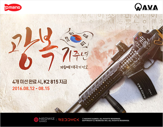 ³×¿ÀÀ§Áî°ÔÀÓÁî´Â °ÔÀÓÆ÷ÅÐ ÇǸÁÀÌ ¼ºñ½ºÇÏ´Â ´ëÇ¥°ÔÀÓ ½ºÆä¼ÈÆ÷½º, ¾Æ¹Ù(A.V.A), ºí·¢½ºÄõµå, ½½·¯°Å¿¡¼ ±¤º¹ÀýÀ» ¸Â¾Æ ÀÌ¿ëÀÚ¿Í ÇÔ²²ÇÏ´Â ´Ù¾çÇÑ À̺¥Æ®¸¦ ÁøÇàÇÑ´Ù°í 12ÀÏ ¹àÇû´Ù. ÇǸÁÀÇ ´ëÇ¥ FPS°ÔÀÓ ¡®½ºÆä¼ÈÆ÷½º¡¯´Â ±¤º¹Àý ´çÀÏÀÎ 8¿ù 15ÀÏ¿¡ ·Î±×ÀÎ ÈÄ GMÄÁÅÙÃ÷ ¾ÆÀÌÅÛ ¹Þ±â¸¦ Ŭ¸¯Çϸé űرâ ÄÁ¼ÁÀÇ ¾ÆÀÌÅÛ 3Á¾ (Å屯 ¿ÏÀå, Å屯 ¿¥ºí·½, ÅÂ±Ø Å¸ÀÌÆ²)À» ¼±¹°·Î Á¦°øÇÑ´Ù. ¶ÇÇÑ °ÔÀÓÀ» Ç÷¹ÀÌÇÑ ¸ðµç ÀÌ¿ëÀÚ¿¡°Ô´Â °æÇèÄ¡ 150%, °ÔÀÓ¸Ó´Ï 150% Ãß°¡ ȹµæ È¿°ú(¹öÇÁ)°¡ ÁÖ¾îÁø´Ù. ¸íǰ ¹Ð¸®Å͸® FPS°ÔÀÓ ¡®¾Æ¹Ù(A.V.A)¡¯´Â 12ÀϺÎÅÍ 15ÀϱîÁö °ÔÀÓ¿¡¼ Á¦°øÇÏ´Â °¢Á¾ ¹Ì¼ÇÀ» ´Þ¼ºÇϸé K2 815 ¿µ±¸Ãѱâ, °ÔÀÓ¸Ó´Ï 1¸¸ À¯·Î, GMÇØ¸Ó¹Ú½º ¾ÆÀÌÅÛ µîÀ» Áö±ÞÇÏ´Â À̺¥Æ®¸¦ ÁøÇàÇÑ´Ù. ¶ÇÇÑ ÇØ´ç ±â°£ µ¿¾È °ÔÀÓÀ» Ç÷¹ÀÌÇÏ´Â ÀÌ¿ëÀÚ¿¡°Ô´Â °ÔÀӸӴϸ¦ 300% Ãß°¡ ȹµæÇÒ ¼ö ÀÖ´Â È¿°ú(¹öÇÁ)°¡ Á¦°øµÈ´Ù. ¾Æ¿ï·¯ ´Ù¾çÇÑ ÄÜÅÙÃ÷¿Í ¼¼·ÃµÈ ±×·¡ÇÈÀÌ ÀåÁ¡ÀÎ ½´ÆÃ°ÔÀÓ ¡®ºí·¢½ºÄõµå¡¯´Â 12ÀϺÎÅÍ 15ÀϱîÁö ¸ÅÀÏ °ÔÀÓÀ» ÇÑÆÇ ÀÌ»ó Ç÷¹ÀÌÇÏ¸é ±ÙÁ¢¹«±â¸¦ ȹµæÇÒ ¼ö ÀÖ´Â ±ÙÁ¢¹«±â ·£´ý¹Ú½º 5°³¸¦ Áö±ÞÇÑ´Ù. ¶ÇÇÑ À̺¥Æ® ±â°£ Áß 10ÆÇÀ» Ç÷¹ÀÌÇÑ ÀÌ¿ëÀÚ¿¡°Ô´Â ±ÙÁ¢¹«±â ·£´ý¹Ú½º 20°³¸¦ Ãß°¡ ÁõÁ¤ÇÑ´Ù. ¿©±â¿¡ 16ÀÏ¿¡´Â ¸»º¹ À̺¥Æ®·Î ¸Å³â ¸»º¹À» ¾î¶»°Ô º¸³Â´ÂÁö »ç¿¬À» °Ô½Ã¹° ´ñ±Û·Î ´Þ¸é Âü¿©ÇÑ ¸ðµç ÀÌ¿ëÀÚ¿¡°Ô ¶Ç·¡¿À·¡ Ãѱ⠷£´ý¹Ú½º 1°³¸¦ ÁõÁ¤Çϰí, Ãß÷À» ÅëÇØ ÃÑ 20¸í¿¡°Ô´Â ¶Ç·¡¿À·¡ ġŲ ±âÇÁÆ®ÄÜÀ» ¹ß¼ÛÇÑ´Ù. ¿Â¶óÀÎ ¾ß±¸°ÔÀÓ ¡®½½·¯°Å¡¯ ¿ª½Ã 12ÀϺÎÅÍ 15ÀϱîÁö À̺¥Æ®¸¦ ÁøÇàÇÑ´Ù. ¸ÅÀÏ ½Ã°£ º°·Î 2ȸ Á¢¼ÓÇÑ ÀÌ¿ëÀÚ¿¡°Ô´Â ´Ù¾çÇÑ µå·¡ÇÁÆ®±ÇÀÌ Á¾·ù º°·Î Áö±ÞµÇ¸ç, 1°æ±â¸¦ ¿Ï·áÇÏ¸é ½Ã¹Ä·¹ÀÌ¼Ç ÄÚÄ¡, À¯´ÏÆû µî À¯·á ¾ÆÀÌÅÛÀ» Ãß°¡·Î ÁõÁ¤ÇÑ´Ù. ¶ÇÇÑ À̺¥Æ® ±â°£ µ¿¾È ¼±¼öÀ°¼º °æÇèÄ¡°¡ 2¹è·Î »ó½ÂÇϸç, Æ÷ÀÎÆ® ±³È¯¼Òµµ 2¹è·Î Àû¿ëµÈ´Ù. ±¤º¹Àý À̺¥Æ®¿¡ ´ëÇÑ º¸´Ù ÀÚ¼¼ÇÑ »çÇ×Àº ÇǸÁ °ø½Ä ȨÆäÀÌÁö(http://www.pmang.com)¿Í °ÔÀÓº° °ø½Ä ȨÆäÀÌÁö¸¦ ÅëÇØ È®ÀÎÇÒ ¼ö ÀÖ´Ù