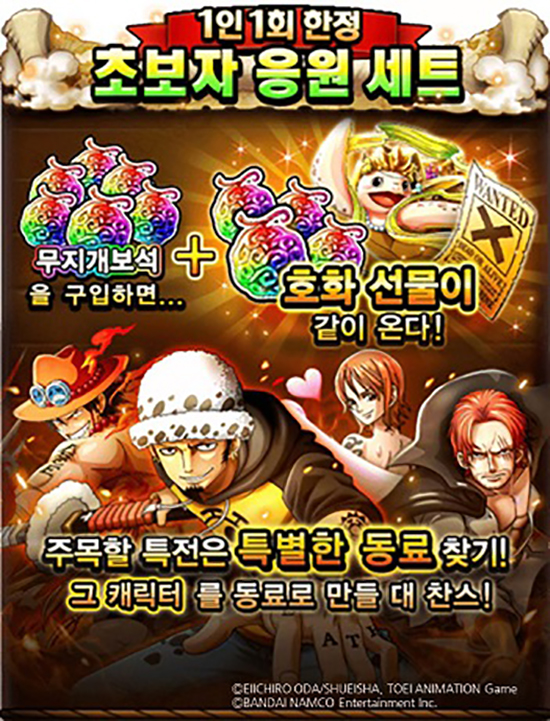 ÁÖ½Äȸ»ç ¹Ý´ÙÀ̳²ÄÚ ¿£ÅÍÅ×ÀÎ¸ÕÆ®´Â Àü ¼¼°è 4500¸¸ ´Ù¿î·Îµå¸¦ µ¹ÆÄÇÑ Àα⠸ð¹ÙÀÏ °ÔÀÓ ¾Û ¡®¿øÇǽº Æ®·¹Àú Å©·çÁî(ONE PIECE TREASURE CRUISE)¡¯ÀÇ ³×À̹ö °ø½Ä Ä«Æä¸¦ °³¼³ÇÏ°í ±â³ä À̺¥Æ®¸¦ ÁøÇàÇÑ´Ù. ¡á ¡®¿øÇǽº Æ®·¹Àú Å©·çÁ ³×À̹ö °ø½Ä Ä«Æä °³¼³! ¶ß°Å¿î ¼º¿ø¿¡ ÈûÀÔ¾î Çѱ¹ ³» 600¸¸ ´Ù¿î·Îµå¸¦ µ¹ÆÄÇÑ ¡®¿øÇǽº Æ®·¹Àú Å©·çÁ°¡ ³×À̹ö °ø½Ä Ä«Æä(http://cafe.naver.com/bneoptc)¸¦ °³¼³Çß´Ù. Ä¿¹Â´ÏƼ¸¦ ÅëÇÑ À̺¥Æ® °øÁö´Â ¹°·Ð ÃʽÉÀÚ¿ë °ø·« °¡À̵å, À¯Àú °£ Á¤º¸ ±³È¯¿ë °Ô½ÃÆÇ µî Æ®·¹Àú Å©·çÁîÀÇ °ø½Ä Á¤º¸°¡ °¡µæÇÑ Ä«Æä´Ù. Ä«Æä¿¡ °¡ÀÔÇÏ¸é °ÔÀÓÀ» ´õ¿í ¾ËÂ÷°Ô Áñ±æ ¼ö ÀÖ´Ù. ¡á ³×À̹ö °ø½Ä Ä«Æä °³¼³ ±â³ä! À̺¥Æ® ÁøÇà! À̺¥Æ® ±â°£ ³» Ä«Æä °¡ÀÔÀÚ ¼ö¿¡ µû¶ó °ÔÀÓ ³»¿¡¼ »ç¿ëÇÒ ¼ö Àִ ǪÁüÇÑ º¸»óÀ» ¼±¹°·Î Á¦°øÇÑ´Ù. Ä£±¸µé°ú ÇÔ²² À̹ø ±âȸ¿¡ °¡ÀÔÇϸé ǪÁüÇÑ º¸»óÀ» ¾òÀ» ¼ö ÀÖ´Ù. °¡ÀÔÀÚ ¼ö¿¡ µû¸¥ ´Þ¼º º¸»óÀº ´ÙÀ½°ú °°´Ù.¡¡ ¨ç1¸¸¸í: ¹«Áö°³ º¸¼® 5°³ ¨è3¸¸¸í: ¿ø·Î °ÅºÏ 5Á¾(»¡°/ÃÊ·Ï/ÆÄ¶û/³ë¶û/°ËÁ¤ 1¸¶¸®¾¿£© ¨é5¸¸¸í: ¹«Áö°³ º¸¼® 10°³ À̺¥Æ® ±â°£Àº 8¿ù 25ÀÏ ¿ÀÈÄ 5½Ã±îÁö´Ù. ÀÚ¼¼ÇÑ À̺¥Æ® ³»¿ë ¹× ÀÏÁ¤Àº °ÔÀÓ ³» °øÁö ¶Ç´Â °ø½Ä Ä«Æä, °ø½Ä »çÀÌÆ®¿¡¼ È®ÀÎÇÒ ¼ö ÀÖ´Ù. À̺¥Æ® ³»¿ëÀº »çÀü ¿¹°í ¾øÀÌ º¯°æ ¶Ç´Â Á¾·áµÉ ¼ö ÀÖ´Ù. ¤ý °ø½Ä »çÀÌÆ®: http://www.bandaigames.channel.or.jp/list/one_main/tc/kr/ ¡á ´ë±Ô¸ð ¹öÀü¾÷! ·©Å· ±â´É Ãß°¡! 8¿ù 18ÀÏ(¸ñ) ¾÷µ¥ÀÌÆ®¸¦ ÅëÇØ ·©Å· ±â´É ¡®»þŰÀÇ ¿øÇǽº ·©Å·¡¯ÀÌ Ãß°¡µÆ´Ù. Ä£±¸¸¦ ¸ÎÀº ÇØÀû³¢¸® ¡®ÇØÀû¿Õ °ñµå ·ÎÀúÀÇ ±â·Ï¡¯¿¡ µµÀüÇÏ¸ç °æÀïÇÏ´Â ÄڳʴÙ. ·©Å· Á¾·ù ¤ý ´©°è: ÁøÇà ±â°£ Áß ÀϺ° ÇÏÀ̽ºÄھ ½×¾Æ ¡®´©Àû ÃÑÁ¡¡¯À» °Ü·ç´Â ¹æ½Ä ¤ý ÇÏÀ̽ºÄÚ¾î: ÁøÇà ±â°£ Áß ´ë»ó ½ºÄÚ¾î(µ¥¹ÌÁö, Æò°¡ Æ÷ÀÎÆ® µî)ÀÇ ¡®ÃÖ°íÁ¡¡¯À» °Ü·ç´Â ¹æ½Ä Ưº° º¸»ó ½ºÄھ ÀÏÁ¤ Á¶°ÇÀ» ÃʰúÇÏ¸é °ÔÀÓ ³» Ưº° º¸»óÀ» ¹ÞÀ» ¼ö ÀÖ´Ù! Çö»ó±Ý ½ºÄھ µû¶ó Çö»ó±ÝÀÌ Áö±ÞµÇ¸ç, Çö»ó±ÝÀÌ ÀÏÁ¤ ±Ý¾×À» ³ÑÀ¸¸é Ưº° ¡®ÄªÈ£¡¯¸¦ ¾òÀ» ¼ö ÀÖ´Ù. Çö»ó±ÝÀÌ ´©ÀûµÇ±â ¶§¹®¿¡ ¸Å¹ø Âü°¡ÇØ »óÀ§±ÇÀ» ³ë¸± ¼ö ÀÖ´Ù. ÀÏ¹Ý ¸ðÇèÀÌ ·©Å· ±â´É Ãß°¡·Î ´õ¿í Â¥¸´ÇÏ°Ô ÁøÈÇß´Ù. Ä£±¸¿Í ÇÔ²² Âü°¡ÇØ Æ¯º° º¸»óµµ ¹Þ°í Çö»ó±Ýµµ ÆÅÆÅ ´Ã¸± ¼ö ÀÖ´Ù. ¶ÇÇÑ ¾÷µ¥ÀÌÆ®¸¦ ÅëÇØ ½Å±Ô Àüº¸¹ú·¹ ±â´Éµµ Ãß°¡Çß´Ù. ÀÚ¼¼ÇÑ ³»¿ëÀº ¾Û ¾È¿¡¼ È®ÀÎ °¡´ÉÇÏ´Ù. ¡á Ãʺ¸ÀÚ ÀÀ¿ø ¼¼Æ® Ãâ½Ã °áÁ¤! ¿øÇǽº Æ®·¹Àú Å©·çÁî °ÔÀÓÀ» ¸· ¼³Ä¡Ç߰ųª ¼³Ä¡ÇÏÁö ¾ÊÀº »ç¿ëÀÚ°¡ ¹Ý±æ ¸¸ÇÑ Á¤º¸°¡ ÀÖ´Ù. ÃʽÉÀÚ¸¦ À§ÇÑ ¾Û ³» ¾ÆÀÌÅÛ ¼¼Æ®¸¦ ÆÇ¸ÅÇÑ´Ù. Ãʺ¸ÀÚ ÀÀ¿ø ¼¼Æ®´Â ´©±¸³ª 1ȸ ±¸ÀÔÇÒ ¼ö ÀÖ´Ù. ƯÈ÷ Ưº° µ¿·á ã±â¿¡¼´Â ¸ðÇè ÃÊ¹Ý ÁøÇà¿¡ Á¦°ÝÀÌ´Ù. ÄÚ½ºÆ®´Â ³·°í ½Ç·ÂÀº »§»§ÇÑ Ä³¸¯Å͸¦ ȹµæÇÒ ¼ö ÀÖ´Ù. ¿©·¯¸ð·Î ¾ËÂù Ãʺ¸ÀÚ ÀÀ¿ø ¼¼Æ®¸¦ ÀÔ¼öÇØ ¸ðÇèÀ» ôô ÁøÇàÇϸé ÁÁ´Ù. ¼¼Æ® ³»¿ë ¹«Áö°³ º¸¼® 6°³¿Í ´õºÒ¾î ¾Æ·¡ 3Á¾À» ȹµæÇÒ ¼ö ÀÖ´Ù. ¤ý ¹«Áö°³ º¸¼® 4°³ ¤ý Ưº° µ¿·á ã±â 1ȸ¡¡ ¤ý È£¹Ú ¿ë±Ã °ÅºÏ °øÁÖ 1¸¶¸® ÆÇ¸Å °¡°Ý ¤ý 6039¿ø(¾Èµå·ÎÀ̵å) ¤ý 4.99´Þ·¯(iOS) ¹Ý´ÙÀ̳²ÄÚ_¿øÇǽº Æ®·¹Àú Å©·çÁî»ç¿ë ÁßÀÎ OSº°·Î ±¸ÀÔ °¡°ÝÀº ´Ù¸£´Ù. dzºÎÇÑ ÄÁÅÙÃ÷ Ãß°¡·Î ´õ¿í ´õ Èï¹ÌÁøÁøÇØÁø ¿øÇǽº Æ®·¹Àú Å©·çÁî¿¡ ¸¹Àº ¼º¿øÀÌ ±â´ëµÈ´Ù. ¡á ¿øÇǽº Æ®·¹Àú Å©·çÁî ¼Ò°³ ¿øÇǽº Æ®·¹Àú Å©·çÁî´Â µ¿·á¸¦ ¸ð¾Æ À°¼ºÇÏ°í ¾Ö´Ï¸ÞÀÌ¼Ç ½ºÅ丮 ±×´ë·Î ¸ðÇèÀ» ÇÏ¸ç º¸½ºµé°ú ´ë°áÀ» ÆîÄ¡´Â ½Å°¨°¢ ÅÍÄ¡ ¹èƲ RPG(·ÑÇ÷¹À×°ÔÀÓ) °ÔÀÓÀÌ´Ù. ÀϺ»¿¡¼´Â 2014³â 5¿ùºÎÅÍ ¼ºñ½º°¡ ½ÃÀ۵ưí ÇöÀç Àü¼¼°è 41°³ ±¹°¡¿¡ ¼ºñ½º ÁßÀÌ´Ù. Àü¼¼°è ÃÑ 4500¸¸ ´Ù¿î·Îµå¸¦ µ¹ÆÄÇÑ ºòÈ÷Æ® °ÔÀÓÀÌ ¿ÏÀü ÇѱÛȵŠÇѱ¹¿¡ Á¤½Ä Ãâ½ÃµÆ´Ù. °ÔÀÓ ³»¿¡¼ °³¼º ³ÑÄ¡´Â ij¸¯ÅÍÀÇ Æ¯±â¸¦ »ì·Á Àü·«ÀûÀ¸·Î ÆÄƼ¸¦ ±¸¼ºÇÒ ¼ö ÀÖ´Ù. ÆÄƼ¸¦ ¾î¶»°Ô Â¥´À³Ä¿¡ µû¶ó ´Ù¾çÇÑ ¹èƲÀÌ Èï¹ÌÁøÁøÇÏ°Ô Àü°³µÈ´Ù. ¶ÇÇÑ ½º¸¶Æ®Æù ƯÀ¯ÀÇ ÅÇ ½½¶óÀÌµå ¾×¼Ç°ú °ÔÀÓ ¾Û ƯÀ¯ÀÇ ÇöÀå°¨ ³ÑÄ¡´Â ¿¬ÃâÀ» Çѱ¹¾î·Î ¸¸³£ÇÒ ¼ö ÀÖ´Ù.
