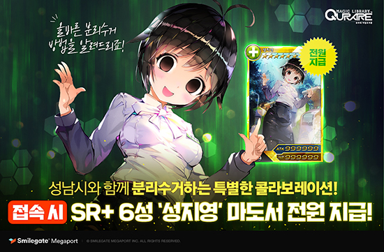 ½º¸¶ÀϰÔÀÌÆ®´Â Ä«µå ¹èƲ ¸ð¹ÙÀÏ RPG ¡®Å¥¶ó·¹: ¸¶¹ýµµ¼°ü(ÀÌÇÏ Å¥¶ó·¹)¡¯ÀÌ ¼º³²½ÃÀÇ ¡¯ºÐ¸®¼ö°Å ¼Ò³à¡¯ ¼ºÁö¿µ ij¸¯Å͸¦ ¾÷µ¥ÀÌÆ® ¿Ï·áÇßÀ¸¸ç, À̸¦ ±â³äÇØ À¯ÀúµéÀÇ 2Â÷ âÀÛ¹° °ø¸ð À̺¥Æ®¸¦ ½Ç½ÃÇÑ´Ù°í 26ÀÏ(±Ý) ¹àÇû´Ù. À̹ø ¾÷µ¥ÀÌÆ®´Â ¡®ÀÌ ¸ÚÁø µµ½Ã¿¡ ºÐ¸®¼ö°Å¸¦!¡¯À̶ó´Â À̸§À¸·Î ÁøÇàµÇ¸ç ¡®Q ÀÎÅͳ»¼Å³Î¡¯ÀÇ ¿µ¾÷ 3ÆÀ ¹Ì¿ì, ¼¿¶ó, µ¨ÇÉÀÌ S½Ã °ø¹«¿ø ¼ºÁö¿µ ¾¾¿Í ¹Î°ü Çù·Â»ç¾÷À¸·Î ¸¸³ª¸é¼ »ý±â´Â À̾߱⸦ ´ã°í ÀÖ´Ù. ºÐ¸®¼ö°Å¿Í °ü·ÃµÈ ÀÏÀ» º¸¸é Àý´ë Áö³ªÄ¡Áö ¸øÇÏ´Â S½Ã °ø¹«¿ø ¡®¼ºÁö¿µ¡¯À» Áß½ÉÀ¸·Î ºôµùÀÇ ºÐ¸®¼ö°Å¸¦ Ã¥ÀÓÁö´Â ¡®°æºñ¿ø ½ºÄ«ÆäÀ̽º¡¯, Å𿪠±ºÀÎ Ãâ½ÅÀ¸·Î µ¿³×ÀÇ Ä¡¾ÈÀ» Ã¥ÀÓÁö´Â ¡®Àü¿ìȸ ¸ù°í¸Þ¸®¡¯ µî Å¥¶ó·¹ÀÇ °íÄ÷¸®Æ¼ ¸¶µµ¼°¡ Ãß°¡·Î µîÀåÇÒ ¿¹Á¤ÀÌ´Ù. ½º¸¶ÀϰÔÀÌÆ®´Â ³»´Þ 22ÀϱîÁö °ÔÀÓ¿¡ Á¢¼ÓÇÑ À¯Àúµé¿¡°Ô SR+6¼º µî±ÞÀÇ ¡®¼ºÁö¿µ¡¯ ¸¶µµ¼¸¦ 100% Áö±ÞÇÒ ¿¹Á¤ÀÌ´Ù. ¼ºÁö¿µ ij¸¯Åʹ Ưº° Á¦ÀÛ¿¡ °É¸Âµµ·Ï À¯´ÏÅ© ½ºÅ³ÀÎ ¡®ºÐ¸®¼ö°Å¡¯°¡ ÀåÂøµÅ ÀÖ´Ù. ¶ÇÇÑ ½º¸¶ÀϰÔÀÌÆ®´Â À̹ø ¾÷µ¥ÀÌÆ®¸¦ ±â³äÇØ ¼ºÁö¿µ ij¸¯Å͸¦ Ȱ¿ëÇÑ À¯ÀúµéÀÇ 2Â÷ âÀÛ¹° °ø¸ð À̺¥Æ®¸¦ ½Ç½ÃÇÑ´Ù. À¯ÀúµéÀº ¼ºÁö¿µ ij¸¯Å͸¦ Ȱ¿ëÇØ ÆÒ ¾ÆÆ®, ¼Ò¼³, ¿µ»ó µî ´Ù¾çÇÑ ¹æ½ÄÀÇ 2Â÷ âÀÛ¹°À» Å¥¶ó·¹ °ø½Ä Ä¿¹Â´ÏƼ À̺¥Æ® °Ô½ÃÆÇ¿¡ ÀÀ¸ðÇÒ ¼ö ÀÖ´Ù. »óǰÀ¸·Î´Â ¡®¼ºÁö¿µ ij¸¯ÅÍ Á·ÀÚºÀ¡¯°ú ¡®¾Æ¸¶Äí»ç ½Ã·Î ij¸¯ÅÍ Á·ÀÚºÀ¡¯À» ºñ·ÔÇØ °ÔÀÓ ³» ¾ÆÀÌÅÛÀÎ ¡®SR+ ¼Õ»ó¼¡¯, ¡®SR ¼Õ»ó¼¡¯ µîÀÌ ¿¹Á¤µÅ ÀÖ´Ù. ±¹³» ´ëÇ¥ Ä«µå ¹èƲ RPG·Î¼ Å« »ç¶ûÀ» ¹Þ°í Àִ ť¶ó·¹¿¡ ´ëÇÑ ¼¼ºÎ ³»¿ëÀº ÀÌ °ÔÀÓÀÇ °ø½Ä Ä¿¹Â´ÏƼ(http://cafe.naver.com/qurare)¿¡¼ È®ÀÎÇÒ ¼ö ÀÖ´Ù. Å¥¶ó·¹´Â ±¹³» ±¸±Û Ç÷¹À̸¦ ºñ·ÔÇØ ¾ÖÇà ¾Û½ºÅä¾î, ¿ø½ºÅä¾î µî¿¡¼ ¹«·á·Î ´Ù¿î·Îµå ¹ÞÀ» ¼ö ÀÖ´Ù.