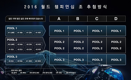 ¡®¸®±× ¿Àºê ·¹Àüµå(ÀÌÇÏ LoL)¡¯ÀÇ °³¹ß ¹× À¯Åë»ç ¶óÀ̾ù °ÔÀÓÁî°¡ ¿À´Â 29ÀÏ(ÇöÁö ½Ã°¢ ±âÁØ)ºÎÅÍ ÇÑ´Þ µ¿¾È ¹Ì±¹ Àü¿ª¿¡¼ °³ÃֵǴ ¡®2016 ½ÃÁ𠸮±× ¿Àºê ·¹Àüµå(League of Legends, ÀÌÇÏ LoL) ¿ùµå èÇǾð½Ê(ÀÌÇÏ ·ÑµåÄÅ)¡¯¿¡ ÃâÀüÇÏ´Â 16°³ÆÀ°ú ¿¹¼± Á¶Ãß÷ °ü·Ã ¼¼ºÎ ³»¿ëÀ» ¹ßÇ¥Çß´Ù. Àü¼¼°è¿¡¼ 16°³ÆÀÀÌ Âü°¡ÇÏ´Â 2016 ½ÃÁð ·ÑµåÄÅÀº ÃÑ 213¸¸ ´Þ·¯(¿ì½Â »ó±Ý 100¸¸ ´Þ·¯) ±Ô¸ð·Î ÁøÇàµÈ´Ù. Áö³ 6ÀÏ ºÏ¹Ì¿Í À¯·´ Áö¿ª¿¡ ¹èÁ¤µÈ ¸¶Áö¸· ·ÑµåÄŠƼÄÏÀÇ Çâ¹æÀÌ °¡·ÁÁö¸ç ·ÑµåÄÅ¿¡ ¹èÁ¤µÈ ÃÑ 16ÀåÀÇ ÁøÃâ±Ç ÁÖÀÎÀÌ È®Á¤µÆ´Ù. ÁøÃâ±ÇÀº Áö¿ª ¸®±×ÀÇ ±Ô¸ð¿Í ½Ç·Â µîÀ» °¨¾ÈÇØ Çѱ¹(LCK), Áß±¹(LPL), ºÏ¹Ì(NA LCS), À¯·´(EU LCS)¿¡ °¢°¢ 3Àå, ´ë¸¸, È«Äá, ¸¶Ä«¿À¸¦ ¾Æ¿ì¸£´Â µ¿³²¾Æ½Ã¾Æ(LMS)¿¡ 2Àå, ±×¸®°í ÀÎÅͳ»¼Å³Î ¿ÍÀϵå Ä«µå ¼±¹ßÀü(IWCQ)¸¦ °ÅÄ¡´Â ±× ¿Ü ½ÅÈï Áö¿ª¿¡ 2ÀåÀÌ ¹èÁ¤µÆ´Ù. LCK¿¡¼´Â ¶ô½º ŸÀ̰ÅÁî, SKÅÚ·¹ÄÞ T1¿¡ ÀÌ¾î »ï¼º °¶·°½Ã°¡ ±ØÀûÀ¸·Î ¸¶Áö¸· ³²Àº ·ÑµåÄÅÇà Æ¼ÄÏÀ» °Å¸ÓÁã¾ú´Ù. LPLÀ» ´ëÇ¥ÇØ¼´Â ¿¡µå¿öµå °ÔÀ̹Ö(Edward Gaming, EDG), ·Î¾â ³×¹ö ±âºê¾÷(Royal Never Give Up, RNG), ¾ÆÀÌ ¸ÅÀÌ(I May)°¡ ÃâÀüÇϸç, NA LCS¿¡¼´Â ÆÀ ¼Ö·Î¹Ìµå(Team SoloMid, TSM), Ä«¿îÅÍ ·ÎÁ÷ °ÔÀ̹Ö(Counter Logic Gaming, CLG), Ŭ¶ó¿ìµå 9 µî 3ÆÀÀÌ Ãâ°ÝÇÑ´Ù. EU LCS¿¡¼´Â Áö³ 5¿ù 2016 ¹Ìµå ½ÃÁð ÀκñÅ×À̼ųÎ(Mid-Season Invitational, MSI)¿¡ ³ª¿Â ¹Ù ÀÖ´Â G2 e½ºÆ÷Ã÷(G2 eSports)¸¦ ºñ·ÔÇØ H2k °ÔÀ̹Ö(H2k Gaming)°ú ½ºÇöóÀ̽º(Splyce)°¡ ÁøÃâÇßÀ¸¸ç, LMS¿¡¼´Â ÀüÅëÀÇ °È£ Ç÷¡½Ã ¿ïºêÁî(Flash Wolves)¿Í ahq e½ºÆ÷Ã÷ Ŭ·´(ahq e-Sports Club)ÀÌ ³ª¿Â´Ù. IWCQ¸¦ ´ëÇ¥ÇØ¼´Â ºê¶óÁúÀÇ INTZ e½ºÆ÷Ã÷ Ŭ·´(INTZ e-Sports Club)°ú µ¶¸³±¹°¡¿¬ÇÕ(CIS)ÀÇ ¾Ë¹ö½º ³ì½º ·ç³ª(Albus Nox Luna)°¡ ·ÑµåÄÅ¿¡ µ¥ºßÇÏ°Ô µÈ´Ù. ¿ì½ÂÀ» ÇâÇÑ º»°ÝÀûÀÎ ¿©Á¤À» ½ÃÀÛÇÏ´Â Á¶º° ¿¹¼±Àº 4ÆÀ¾¿ 4°³ Á¶¿¡ Æí¼ºµÅ ´ÜÆÇ½ÂÁ¦ÀÇ Á¶º° Ç®¸®±× Çü½ÄÀ¸·Î ÁøÇàµÈ´Ù. 2¶ó¿îµå·Î ÁøÇàµÇ±â ¶§¹®¿¡ °°Àº Á¶ÀÇ ´Ù¸¥ ÆÀµé°ú µÎ ¹ø¾¿ ¸ÂºÙ°Ô µÈ´Ù. À̹ø ·ÑµåÄÅ ¿¹¼± Á¶Ãß÷ °úÁ¤Àº Áö³ ÇØ¿Í µ¿ÀÏÇϳª Á¶Ãß÷ Ç® ¹èÁ¤ °úÁ¤¿¡¼ ¾à°£ÀÇ º¯È°¡ ÀÖ¾ú´Ù. ÀÌ¹Ì ¹ßÇ¥ÇÑ ¹Ù¿Í °°ÀÌ Áö³ 5¿ù Áß±¹ »óÇÏÀÌ¿¡¼ °³ÃÖµÈ 2016 MSI ¼ºÀû°ú Ç®¹èÁ¤À» ¿¬°èÇÑ °Í. µû¶ó¼ 2016 MSI¿¡¼ 1À§ºÎÅÍ 4À§¸¦ Â÷ÁöÇÑ Áö¿ªÀÇ 1¹ø ½ÃµåÆÀÀÌ Ç®1¿¡ ¹èÁ¤µÈ´Ù. ÀÌ·Î ÀÎÇØ Áö³ ÇØ Ç®1¿¡ ¹èÁ¤µÆ´ø EU LCS 1¹ø ½Ãµå°¡ Ç®2·Î ³»·Á°¡°í LMS 1¹ø ½ÃµåÀÎ Ç÷¡½Ã ¿ïºêÁî°¡ Ç®1À¸·Î ¿Ã¶ó¿À°Ô µÅ, NA LCS, LPL, LCKÀÇ 1¹ø ½ÃµåÆÀ°ú ÇÔ²² Ç®1À» ±¸¼ºÇÑ´Ù. ÀÌ °°Àº ¿øÄ¢¿¡ µû¶ó Ç®1¿¡´Â ¶ô½º ŸÀ̰ÅÁî(LCK #1), ¿¡µå¿öµå °ÔÀ̹Ö(LPL #1), ÆÀ ¼Ö·Î¹Ìµå(NA LCS #1), Ç÷¡½Ã ¿ïºêÁî(LMS #1)°¡ ÀÚ¸®ÇÑ´Ù. Ç®2¿¡´Â LPL°ú LCK¿¡¼ 2¹ø ¹× 3¹ø ½Ãµå¸¦ ¹ÞÀº ÆÀ, LMS¿Í NA LCSÀÇ 2¹ø ½Ãµå ÆÀ, EU LCSÀÇ 1¹ø ¹× 2¹ø ½ÃµåÆÀ µî ÃÑ 8°³ ÆÀÀÌ Æ÷ÇԵȴÙ. ¸¶Áö¸· Ç®3¿¡´Â NA LCS¿Í EU LCSÀÇ 3¹ø ½Ãµå ÆÀ°ú IWCQ¸¦ ÅëÇØ ¿Ã¶ó¿Â 2ÆÀÀÌ ¼ÓÇÏ°Ô µÈ´Ù. µû¶ó¼ Ç®2¿¡´Â SKÅÚ·¹ÄÞ T1(LCK #2), »ï¼º °¶·°½Ã(LCK #3), ·Î¾â ³×¹ö ±âºê¾÷(LPL #2), ¾ÆÀÌ ¸ÅÀÌ(LPL #3), ahq e½ºÆ÷Ã÷ Ŭ·´(LMS #2), G2 e½ºÆ÷Ã÷(EU LCS #1), H2k °ÔÀ̹Ö(EU LCS #2)°¡ ¹èÁ¤µÈ´Ù. Ç® 3¿¡´Â Ŭ¶ó¿ìµå9(NA LCS #3), ½ºÇöóÀ̽º(EU LCS #3), INT e½ºÆ÷Ã÷ Ŭ·´(IWCQ #1), ¾Ë¹ö½º ³ì½º ·ç³ª(IWCQ #2)°¡ ¹èÄ¡µÈ´Ù. °¢ Á¶¿¡´Â Ç®1¿¡¼ ÇÑ ÆÀ, Ç®2¿¡¼ µÎ ÆÀ, Ç®3¿¡¼ ÇÑ ÆÀÀÌ ¹èÄ¡µÇ¸ç °°Àº Áö¿ª ÆÀÀº °°Àº Á¶¿¡ Æí¼ºµÇÁö ¾Ê´Â´Ù. Á¶º° ¿¹¼± °á°ú °¢ Á¶ 2À§±îÁö 8° Åä³Ê¸ÕÆ®¿¡ ÁøÃâÇϸç, ÀÌ ¶§ºÎÅÍ °á½ÂÀü±îÁö ¸ðµç °æ±â´Â 5Àü 3¼±½ÂÁ¦·Î ÁøÇàµÈ´Ù. Á¶ Ãß÷Àº OGNÀ» ÅëÇØ Çѱ¹ ½Ã°£À¸·Î 11ÀÏ(ÀÏ) »õº® 3½ÃºÎÅÍ »ýÁß°èµÈ´Ù. ±ÇÁ¤Çö ¶óÀ̾ù °ÔÀÓÁî e½ºÆ÷Ã÷Ä¿¹Â´ÏÄÉÀÌ¼Ç º»ºÎ ÃѰý »ó¹«´Â ¡°Àü¼¼°è ÃÖ°íÀÇ e½ºÆ÷Ã÷ ÃàÁ¦ Áß ÇϳªÀÎ ·ÑµåÄÅÀÌ ºü¸£°Ô ´Ù°¡¿À°í ÀÖ´Ù¡±¸ç, ¡°Á¶Ãß÷ °á°ú¿¡ µû¶ó ÀÚ½ÅÀÌ ÀÀ¿øÇÏ´Â ÆÀÀÇ 8° Åä³Ê¸ÕÆ® ÁøÃâ °¡´É¼ºÀ» ¾î´À Á¤µµ ¿³º¼ ¼ö ÀÖ´Â ¸¸Å ¸¹Àº ÆÒµéÀÌ °ü½ÉÀ» °¡Áú °ÍÀ¸·Î ±â´ëµÈ´Ù¡±°í ¸»Çß´Ù. ÇÑÆí, À̹ø 2016 ½ÃÁð ·ÑµåÄÅÀº 9¿ù 29ÀϺÎÅÍ 10¿ù 29ÀÏ(ÀÌÇÏ ÇöÁö ½Ã°¢ ±âÁØ)±îÁö ÇÑ´Þ °£ ¹Ì±¹ Àü¿ªÀ» ¿À°¡¸ç ÆîÃÄÁø´Ù. Á¶º° ¿¹¼±Àº »÷ÇÁ¶õ½Ã½ºÄÚÀÇ ºô ±×·¹À̾ö ½Ãºò ¿ÀµðÅ丮¿ò(Bill Graham Civic Auditorium)¿¡¼, 8°ÀüÀº ½ÃÄ«°í¿¡ À§Ä¡ÇÑ ½ÃÄ«°í ¾¾¾îÅÍ(Chicago Theatre)¿¡¼ ÁøÇàµÈ´Ù. 4°ÀüÀº ´º¿åÀÇ ¸Åµð½¼ ½ºÄù¾î °¡µç(Madison Square Garden)¿¡¼ ¿¸®¸ç, ´ë¸ÁÀÇ °á½ÂÀüÀº ·Î½º¾ØÁ