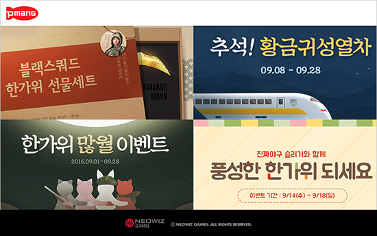 ³×¿ÀÀ§Áî°ÔÀÓÁî´Â °ÔÀÓÆ÷ÅÐ ÇǸÁÀÌ ¼ºñ½ºÇÏ´Â ´ëÇ¥ °ÔÀÓµéÀÌ ¹ÎÁ· ´ë ¸íÀý Ãß¼®¸¦ ¸Â¾Æ ´ë±Ô¸ð À̺¥Æ®¸¦ ÁøÇàÇÑ´Ù°í 7ÀÏ ¹àÇû´Ù. MMORPG ¡®ºí·¹½º¡¯´Â 9¿ù 13ÀϺÎÅÍ 18ÀϱîÁö ÃÑ 6Àϰ£ Ãâ¼® üũ À̺¥Æ®¸¦ ÁøÇàÇÑ´Ù. À̺¥Æ® ±â°£ Áß ¸ÅÀÏ °ÔÀÓ¿¡ Á¢¼ÓÇÏ¸é ±â°£Á¦ °øÁß Å»°ÍÀ» Áö±ÞÇϰí, Á¢¼Ó ½Ã°£¿¡ µû¶ó ÃÖ»óÀ§ Àåºñ ¾ÆÀÌÅÛ »óÀÚ¸¦ Á¦°øÇÑ´Ù. ¶ÇÇÑ ´©Àû Á¢¼Ó Àϼö¸¦ ±âÁØÀ¸·Î Ãß÷À» ÅëÇÑ ¹®È»óǰ±Çµµ ÁõÁ¤ÇÑ´Ù. Ãß°¡·Î ¿¬ÈÞ ±â°£ Áß °ÔÀÓÀ» Ç÷¹ÀÌÇÏ¸é ´Ù¾çÇÑ ¾ÆÀÌÅÛÀ» ȹµæÇÒ ¼ö ÀÖ´Ù. °³³äFPS°ÔÀÓ ¡®ºí·¢½ºÄõµå¡¯µµ 13ÀϺÎÅÍ 26ÀϱîÁö °ÔÀÓÀ» Ç÷¹ÀÌ ÇÑ ÀÌ¿ëÀÚ¿¡°Ô 3°¡Áö·Î ±¸¼ºµÈ ¾ÆÀÌÅÛ ¼±¹°¼¼Æ®¸¦ ÁõÁ¤ÇÑ´Ù. ¸ÕÀú Ç÷¹ÀÌ ½Ã°£¿¡ µû¶ó °ñµå µî±Þ ¿µ±¸ ÃÑ±â ¹× ½ºÅ² ÃÑ±â ÆÐŰÁö¸¦ Á¦°øÇÑ´Ù. ¿©±â¿¡ Ãß¼® ¿¬ÈÞ 5Àϰ£ ¸ÅÀÏ ÇÏ·ç 3ÆÇ¾¿ °ÔÀÓÀ» Áñ±â¸é ±ÙÁ¢¹«±â ¾ÆÀÌÅÛ »óÀÚ¸¦ Áö±ÞÇϸç, ¿¬ÈÞ 5ÀÏ ¸ðµÎ À̺¥Æ® Âü¿© ½Ã °ñµåµî±Þ ±ÙÁ¢¹«±â¿Í ¿µ±¸ Ãѱâ 1Á¤ÀÌ ÁÖ¾îÁø´Ù. ´ëÇѹα¹ ´ëÇ¥ FPS°ÔÀÓ ¡®½ºÆä¼ÈÆ÷½º¡¯´Â 9¿ù 8ÀϺÎÅÍ 28ÀϱîÁö ¾ÆÀÌÅÛ Áö±Þ À̺¥Æ®¸¦ ¿ÀÇÂÇÑ´Ù. ÀÌ¿ëÀÚ´Â °ÔÀÓ Á¢¼Ó ½Ã°£, ±â°£Á¦ ¾ÆÀÌÅÛ ¼Òºñ, ¸¶Àϸ®Áö ´©Àû µîÀ» ÅëÇØ Ȳ±Ý¿Â÷Ç¥¸¦ ȹµæÇÏ¿© ´Ù¾çÇÑ ¾ÆÀÌÅÛÀ¸·Î ±³È¯Çϰųª, »Ì±â Âù½º¿¡ µµÀüÇÒ ¼ö ÀÖ´Ù. ¶ÇÇÑ À̺¥Æ® ±â°£ µ¿¾È °ÔÀÓÀ» 1ÆÇ, 3ÆÇ, 5ÆÇ±îÁö ¿Ï·áÇÏ¸é ¾ÆÀÌÅÛÀ» ¹ÞÀ» ¼ö ÀÖÀ¸¸ç, ÃÑ 10ȸ, 15ȸ Ãâ¼®(ÀÏÀÏ 5ÆÇ ¿Ï·á ½Ã 1ȸ Ãâ¼®) ¿Ï·áÇϸé Ãß°¡ ¾ÆÀÌÅÛµµ ȹµæÇÒ ¼ö ÀÖ´Ù. ¹Ð¸®Å͸® FPS°ÔÀÓ ¡®¾Æ¹Ù(A.V.A)¡¯´Â 9¿ù 13ÀϺÎÅÍ 19ÀϱîÁö Äü¸ÅÄ¡ ÆøÆÄ¹Ì¼Ç, Å»Ãâ¸ðµå, K-èÇǾð½Ê¿¡¼ ´©Àû Ç÷¹ÀÌ 10ųÀ» ´Þ¼ºÇϸé 1ÀÏ Ã⼮üũ°¡ ¿Ï·áµÇ¾î °ÔÀÓ¸Ó´Ï 1¸¸À¯·Î¿Í ·¹µåƼÄÏ 10RT¸¦ Áö±ÞÇÑ´Ù. 6ÀÏ ÀÌ»ó Ãâ¼®Çϸé 10¸¸ À¯·Î°¡ Ãß°¡ Á¦°øµÇ¸ç, 7ÀÏ Ãâ¼®Çϸé ÃÑ 17¸¸ À¯·Î¿Í 70RT°¡ ÁõÁ¤µÈ´Ù. ¿©±â¿¡ 14ÀϺÎÅÍ 18ÀϱîÁö ³×¿ÀÀ§Áî PC¹æ¿¡¼ Ç÷¹ÀÌ ÇÑ ÀÌ¿ëÀÚ´Â Ç÷¹ÀÌ ´©Àû ½Ã°£ÀÌ 300ºÐ µ¹ÆÄ ½Ã ¿µ±¸ Ãѱ⸦ ȹµæÇÒ ¼ö ÀÖ´Â ¾ÆÀÌÅÛ »óÀÚµµ ȹµæ °¡´ÉÇÏ´Ù. ¿Â¶óÀÎ ¾ß±¸°ÔÀÓ ¡®½½·¯°Å¡¯´Â ¿¬ÈÞ ±â°£(9¿ù 14ÀÏ ~ 18ÀÏ) ¸ÅÀÏ ÇÏ·ç µÎ ¹ø¾¿ Á¢¼Ó ¼±¹°À» Áö±ÞÇÒ ¿¹Á¤ÀÌ´Ù. ¾Æ¿ï·¯ ¸ÅÀÏ 1°æ±â¸¦ ¿Ï·áÇϸé À¯´ÏÆû, ÃÖ´ë Mµî±Þ ¼±¼ö¸¦ ¿µÀÔÇÒ ¼ö ÀÖ´Â µå·¡ÇÁÆ®±Ç, ½Ã¹Ä·¹ÀÌ¼Ç µî À¯·á ¾ÆÀÌÅÛÀÌ Áö±ÞµÇ°í, ¿¬ÈÞ ±â°£ ¼±¼ö À°¼º °æÇèÄ¡¿Í ½½·¯°Å Æ÷ÀÎÆ® ±³È¯¼Ò °æÇèÄ¡°¡ 2¹è·Î »óÇâ Á¶Á¤µÈ´Ù. ¸ð¹ÙÀÏ º¸µå°ÔÀÓ ¡®ÇǸÁ ´º¸Â°í¡¯¿¡¼´Â 9¿ù 26ÀϱîÁö Ä£±¸¸¦ ÃÊ´ëÇϸé Á¤°üÀå »óǰ±Ç, °ÔÀÓ¸Ó´Ï µîÀ» ¹ÞÀ» ¼ö ÀÖ´Ù. ¾Æ¿ï·¯ ¿À´Â 14ÀϺÎÅÍ 18ÀϱîÁö ¿¬ÈÞ ±â°£¿¡ °ÔÀÓÀ» Áñ±â¸é ¸ÅÀÏ Ä¿½ºÅÒ ¾ÆÀÌÅÛ°ú °ÔÀӸӴϵµ Ãß°¡ ÁõÁ¤µÈ´Ù. ¸ð¹ÙÀÏ º¸µå°ÔÀÓ ¡®ÇǸÁÆ÷Ä¿¡¯ ¿Í ¡®ÇǸÁÆ÷Ä¿ for Kakao¡¯¿¡¼´Â 9¿ù 6ÀϱîÁö ¸ÅÀÏ ÆÇ¼ö¿¡ µû¶ó °ÔÀӸӴϸ¦ Áö±ÞÇϰí, 3,4 ½ºÅÜ ´Þ¼º ½Ã Ãß°¡ ¼±¹°µµ Á¦°øÇÑ´Ù. ¶ÇÇÑ ¿À´Â 9¿ù 25ÀϱîÁö Ä£±¸¸¦ 3¸íÀÌ»ó ¸¸µé¸é Ãß÷À» ÅëÇØ Á¤°üÀå 5¸¸¿ø »óǰ±Çµµ Áö±ÞÇÑ´Ù. ¸¶Áö¸·À¸·Î ¿¬ÈÞ ±â°£(9¿ù 13ÀÏ ~ 18ÀÏ) ³×¿ÀÀ§Áî °¡¸Í PC¹æ ¿¡¼ ¡®ºí·¹½º¡¯, ¡®ºí·¢½ºÄõµå¡¯, ¡®½ºÆä¼ÈÆ÷½º¡¯, ¡®¾Æ¹Ù(A.V.A)¡¯, ¡®½½·¯°Å¡¯ µî ÇǸÁ ´ëÇ¥ °ÔÀÓÀ» Ç÷¹ÀÌÇϸé Á¢¼Ó ÀÏ ¼ö¿¡ µû¶ó ÃÖ´ë 4ÀϱîÁö ¾ÆÀÌÅÛÀ» ÁõÁ¤ÇÑ´Ù. ¹ÎÁ· ´ë ¸íÀý Ãß¼®¸¦ ¸Â¾Æ ÇǸÁÀÌ ÁغñÇÑ ÇýÅà À̺¥Æ®¿¡ ´ëÇÑ º¸´Ù ÀÚ¼¼ÇÑ »çÇ×Àº ÇǸÁ °ø½Ä ȨÆäÀÌÁö(http://www.pmang.com)¿Í °ÔÀÓº° °ø½Ä ȨÆäÀÌÁö¸¦ ÅëÇØ È®ÀÎÇÒ ¼ö ÀÖ´Ù.