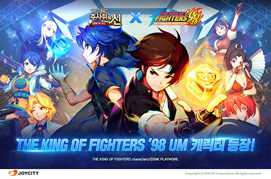Á¶ÀÌ½ÃÆ¼´Â 8ÀÏ ÀϺ» °ÔÀÓ È¸»ç SNK Ç÷¹À̸ð¾î¿Í Á¦ÈÞ¸¦ ¸Î°í, ÀÚ»ç ´ëÇ¥ ¸ð¹ÙÀÏ °ÔÀÓ ¡°ÁÖ»çÀ§ÀÇ ½Å¡±¿¡ À¯¸í °ÝÅõ °ÔÀÓ ¡°´õ Å· ¿Àºê ÆÄÀÌÅÍÁî ¡¯98 ¾óƼ¸ÞÀÌÆ® ¸ÅÄ¡(ÀÌÇÏ KOF ¡¯98 UM)¡±ÀÇ ÄÜÅÙÃ÷¸¦ Ãß°¡ÇÏ´Â ¾÷µ¥ÀÌÆ®¸¦ ½Ç½ÃÇß´Ù°í ÀüÇß´Ù. À̹ø Äݶ󺸷¹ÀÌ¼Ç ¾÷µ¥ÀÌÆ®¸¦ ÅëÇØ ¡°KOF '98 UM¡±ÀÇ ´ëÇ¥ ij¸¯ÅÍÀÎ ¡®Äí»ç³ª±â Ä졯¿Í ¡®¾ß°¡¹Ì ÀÌ¿À¸®¡¯°¡ ¡°ÁÖ»çÀ§ÀÇ ½Å¡±¿¡ ù µîÀåÇß´Ù. ¶ÇÇÑ ±âÂ÷¿ªÀ» ¹è°æÀ¸·Î ÇÑ ½Å±Ô ¸ÊÀ» Ãß°¡ÇßÀ¸¸ç, ÇÑÁ¤ÆÇ ½ºÅ³Ä«µå ¡®ºÎÀÇ »ó¡¡¯°ú ¡®ÆøÁÖ¡¯µµ ÇÔ²² ¼±º¸¿´´Ù. Á¶ÀÌ½ÃÆ¼´Â À̸¦ ±â³äÇØ 5¼º ´ÙÀ̾Ƹóµå µî±ÞÀÇ ¡°KOF '98 UM¡± ij¸¯ÅÍ È¹µæ ½Ã ¡®100¸¸ °ñµå(°ÔÀÓ¸Ó´Ï)¡¯¸¦ Áö±ÞÇÏ´Â À̺¥Æ®¿Í ÀÏÁ¤ Á¶°ÇÀ» ´Þ¼ºÇÑ À¯Àú¸¦ ´ë»óÀ¸·Î Ãß÷À» ÅëÇØ ¡°KOF XIV¡±ÀÇ PS4¢â ´Ù¿î·Îµå ¹öÀü ÇÁ·Î¸ð¼Ç ÄÚµå ¹× Àü¿ë ŸÀÌÆ² º¸³Ê½º µî ÆÄ°ÝÀûÀΠƯÀüÀ» Á¦°øÇÏ´Â À̺¥Æ®¸¦ ÇÔ²² ½Ç½ÃÇÑ´Ù. ¸ð¹ÙÀÏ °ÔÀÓ ¡°ÁÖ»çÀ§ÀÇ ½Å¡±Àº ±¸±Û Ç÷¹ÀÌ ¹× ¾ÖÇà ¾Û½ºÅä¾î, ¿ø½ºÅä¾î¸¦ ÅëÇØ ´©±¸³ª ´Ù¿î·Îµå ¹ÞÀ» ¼ö ÀÖÀ¸¸ç, À̹ø ¡°KOF '98 UM¡±¿ÍÀÇ Äݶ󺸷¹ÀÌ¼Ç À̺¥Æ® ´ëÇÑ º¸´Ù ÀÚ¼¼ÇÑ ³»¿ëÀº °ø½Ä Ä«Æä(http://cafe.naver.com/gameofdice)¸¦ ÅëÇØ È®ÀÎÇÒ ¼ö ÀÖ´Ù.