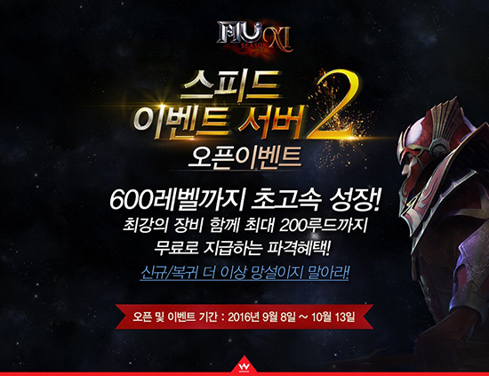 À¥Á¨ÀÇ ´ëÇ¥ PC MMORPG ¡¯¹Â ¿Â¶óÀΡ¯°ú ¡®¹Â ºí·ç¡¯°¡ ¡®½ºÇǵå À̺¥Æ® ¼¹ö2¡¯·Î °ÔÀÓ È¸¿ø È®´ë¿¡ ³ª¼¹´Ù. À¥Á¨Àº ¿À´Â 10¿ù 13ÀϱîÁö ¾à 5ÁÖ°£ Á¤½Ä ¼¹öº¸´Ù ³ôÀº °æÇèÄ¡¿Í ¾ÆÀÌÅÛ È¹µæÀ¸·Î ÃÖ´ë 600·¹º§±îÁö ºü¸¥ ·¹º§¾÷ÀÌ °¡´ÉÇÑ ¡®½ºÇǵå À̺¥Æ® ¼¹ö2¡¯ÀÇ ¿î¿µ°ú ÇÔ²² Âü°¡È¸¿øµéÀ» À§ÇÑ ±â³ä À̺¥Æ®¸¦ ÁøÇàÇÑ´Ù. ¡®½ºÇǵå À̺¥Æ® ¼¹ö2¡¯´Â ¼±Çà ij¸¯ÅÍ ·¹º§¾÷ Á¶°ÇÀÌ ºÙÀº ¸¶°Ë»ç/´ÙÅ©·Îµå/·¹ÀÌÁöÆÄÀÌÅÍ/±×·Î¿ì·£¼ µî 2Â÷ ij¸¯Å͵鵵 Á¦ÇÑ ¾øÀÌ »ý¼ºÇÒ ¼ö ÀÖ¾î ´Ù¾çÇÑ Ä³¸¯ÅÍ À°¼ºÀ» Áñ±â´Â ȸ¿øµéÀ» À§ÇÑ ÃÖÀûÀÇ È¯°æÀ» Á¦°øÇϰí ÀÖ´Ù. À¥Á¨Àº ¡®½ºÇǵå À̺¥Æ® ¼¹ö2¡¯¿¡¼ ij¸¯ÅÍ ·¹º§ 500À» ´Þ¼ºÇÑ ½Å±Ô/º¹±Í ȸ¿øÀ» ´ë»óÀ¸·Î Á¤½Ä ¼¹ö ÀÌÀü ½Ã Á¦°øÇÏ´Â 1°³¿ù Ç® ij½Ã ¾ÆÀÌÅÛÀ» Áö¿øÇϰí, ·¹º§ ´Þ¼º¿¡ µû¶ó Á÷¾÷º° ¼¼Æ® ¾ÆÀÌÅÛ°ú ³¯°³, ¹«±â µî ´Ù¾çÇÑ °ÔÀÓ ¾ÆÀÌÅÛÀ» Áö±ÞÇÑ´Ù. ¶ÇÇÑ À¥Á¨Àº ÇØ´ç ¼¹ö¿¡¼ Ç÷¹ÀÌ ½Ã ¡®¼¹ö ÀÌÀü ÄíÆù¡¯À» ¹«·á·Î Áö¿øÇÏ°í ±âÁ¸ ij¸¯ÅÍ ¼±ÅÃâ¿¡¼ Ç¥½ÃµÆ´ø ¡®À̵¿µÈ ij¸¯ÅÍ¡¯ ¹®±¸¸¦ ¾ø¾Ö´Â µî °ÔÀ̸ӵéÀÇ ¸¸Á·µµ¸¦ Å©°Ô ³ôÀÏ ¿¹Á¤ÀÌ´Ù. À̿ܿ¡µµ À¥Á¨Àº ¡®½ºÇǵå À̺¥Æ® ¼¹ö2¡¯ ³» ¾ÆÀÌÅÛ È¹µæ È®·üÀ» 10¹è·Î »óÇâ ½ÃÄ×À¸¸ç ¡®¹Â ·¹µå¡¯¿Í ¡®¹Â ºí·ç¡¯ÀÇ °æÇèÄ¡¸¦ °¢°¢ 3.5¹è, 3¹è¾¿ »ó½Â½ÃÄÑÁÖ´Â µî °ÔÀ̸ӵéÀÇ º¸´Ù ºü¸¥ ·¹º§¾÷ ȯ°æÀ» Á¦°øÇÑ´Ù. ÇÑÆí, À¥Á¨Àº ¿À´Â 9¿ù Áß ¡®¹Â ¿Â¶óÀΡ¯ÀÇ °æ»óµµ Áö¿ª ±æµåȸ¿øµéÀ» ÃÊ´ëÇØ ¿î¿µÀÚµé°ú ÇÔ²²ÇÏ´Â ½Ã°£À» °¡Áú ¿¹Á¤ÀÌ´Ù. À̹ø Çà»ç´Â ¿À·£ ±â°£ ¡®¹Â ¿Â¶óÀΡ¯À» Áñ±â°í Ȱ¹ßÇÑ ±æµåȰµ¿À» ÆîÃĿ °ÔÀÓ È¸¿øµé¿¡°Ô º¸´äÇÏ´Â Àǹ̷Π¸¶·ÃµÆ´Ù. À¥Á¨ÀÇ ´ëÇ¥ MMORPG ¡®¹Â ¿Â¶óÀΡ¯ÀÇ °ÔÀÓ Á¤º¸¿Í À̺¥Æ®¿¡ ´ëÇÑ º¸´Ù ÀÚ¼¼ÇÑ ¼Ò½ÄÀº °ø½Ä ȨÆäÀÌÁö(http://www.muonline.co.kr)¿¡¼ È®ÀÎÇÒ ¼ö ÀÖ´Ù.