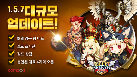 ÄÄÅõ½º´Â Àڻ簡 ÆÛºí¸®½Ì Çϰí Ŭ·¡°ÔÀÓÁî(´ëÇ¥ Á¤Èñö)°¡ °³¹ßÇÑ ¾×¼Ç RPG ¡®¼Ò¿ï½ÃÄ¿¡¯¿¡¼ ÃÊ¿ù ¿µ¿õ ÆÀ¹öÇÁ ½Ã½ºÅÛ ¹× ´Ù¾çÇÑ ½Å±Ô ÄÜÅÙÃ÷¸¦ ¾÷µ¥ÀÌÆ®ÇÑ´Ù°í 29ÀÏ ¹àÇû´Ù. ¡®¼Ò¿ï½ÃÄ¿¡¯´Â °·ÄÇÑ Å¸°Ý°¨°ú ¹ÚÁø°¨ ³ÑÄ¡´Â ¼Òȯ ÀüÅõ°¡ Ư¡ÀÎ ¸ð¹ÙÀÏ ¾×¼Ç RPG·Î, Áö³ 2014³â ±Û·Î¹ú Ãâ½Ã ÀÌÈÄ 200¿© Á¾ÀÇ Ä³¸¯ÅÍ¿Í Å×ũƮ¸®Çü ÀåºñÁ¦ÀÛ ½Ã½ºÅÛÀ» Ȱ¿ëÇÑ ÀÌ»ö Àü·« Ç÷¹ÀÌ·Î ±¹³»¿Ü À¯ÀúµéÀÇ ²ÙÁØÇÑ È£ÀÀÀ» ¾ò°í ÀÖ´Ù. À̹ø ´ë±Ô¸ð ¾÷µ¥ÀÌÆ®¿¡¼´Â ¡®ÃÊ¿ù ¿µ¿õ ÆÀ¹öÇÁ¡¯ ½Ã½ºÅÛÀ» »õ·Ó°Ô Ãß°¡, ¿µ¿õ Á¶ÇÕÀÇ Àü·«Àû Àç¹Ì¸¦ ÇÑÃþ ´õ ¾÷±×·¹À̵åÇß´Ù. âÁ¶, ÆÄ±« ÆòÈ µî µ¿ÀÏÇÑ ¼Ó¼ºÀÇ ÁöÁ¤ ÃÊ¿ù ¿µ¿õµé·Î °°Àº ÆÀÀ» ±¸¼ºÇϸé, ¿µ¿õÀÇ ÇØ´ç ´É·ÂÀ» Çâ»ó½Ãų ¼ö ÀÖ´Â ÆÀ ¹öÇÁ¸¦ ¹ÞÀ» ¼ö ÀÖ´Ù. ¶Ç ±æµå¿ø°£ÀÇ »óÈ£ Çù·ÂÀ» ÅëÇØ ´Ù¾çÇÑ º¸»óÀ» ÇÔ²² ȹµæÇÒ ¼ö ÀÖ´Â ¡®±æµå Á¶»ç´Ü¡¯ ÄÜÅÙÃ÷¿Í °°Àº ±æµå¿¡ ¼Ò¼ÓµÈ ±æµå¿øµé¸¸ ÀÌ¿ëÇÒ ¼ö ÀÖ´Â ¡®±æµå »óÁ¡¡¯ µîÀÌ Ãß°¡µÇ´Â µî °ÔÀÓ ³»¿¡¼ À¯Àúµé °£¿¡ Áñ±â´Â Çù¾÷ÀÇ Àç¹Ìµµ »óÇâµÆ´Ù. ´õºÒ¾î ºÀÀÎµÈ ´ë·úÀÇ 4¹øÂ° Áö¿ªÀÎ ´ëÁö½ÅÀÇ Áö¹èÁö°¡ ¿¸®¸ç, ¸¶Áö¸· ÃÊ¿ù ¸¶¿ÕÀÇ Å¾ÀÎ ¡®ÃÊ¿ù ÆÄ¸êÀÇ Å¾¡¯ÀÌ ¿ÀÇµŠ´õ¿í ´Ù¾çÇÏ°í ½Éµµ ÀÖ´Â ÀüÅõ ÄÜÅÙÃ÷¸¦ Áñ±æ ¼ö ÀÖ´Ù. ÇÑÆí ÄÄÅõ½º´Â À̹ø ¾÷µ¥ÀÌÆ®¿Í ´õºÒ¾î ¿À´Â 10¿ù 8ÀÏ(Åä) ¡®¼Ò¿ï½ÃÄ¿¡¯ 2ÁÖ³âÀ» ±â³äÇÑ À¯Àú °£´ãȸ¸¦ ÁøÇàÇÑ´Ù. »çÀü ½ÅûÀÚ Áß ¼±Á¤µÈ ÃÑ 30¸íÀÇ Âü°¡ÀÚ¸¦ ´ë»óÀ¸·Î, ÇâÈÄ ÁøÇàµÇ´Â ¾÷µ¥ÀÌÆ® ÄÜÅÙÃ÷¸¦ »ìÆìº¸°í ÄûÁî À̺¥Æ®¸¦ ÅëÇÑ ÇªÁüÇÑ »óǰÀ» Àü´ÞÇÏ´Â µî À¯Àú¿Í ÇÔ²²ÇÏ´Â ¶æ ±íÀº °¨»ç Çà»ç¸¦ ÁøÇàÇÒ ¿¹Á¤ÀÌ´Ù °ÔÀÓ°ú À̹ø ¾÷µ¥ÀÌÆ® ¹× À¯Àú°£´ãȸ¿¡ °üÇÑ ´õ¿í ÀÚ¼¼ÇÑ ³»¿ëÀº ¡®¼Ò¿ï½ÃÄ¿¡¯ °ø½ÄÄ«Æä (http://cafe.naver.com/soulseeker2014)¸¦ ÅëÇØ È®ÀÎÇÒ ¼ö ÀÖ´Ù.