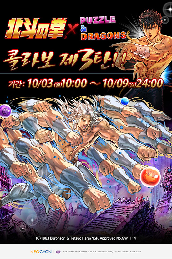 °ÏÈ£¿Â¶óÀο£ÅÍÅ×ÀÎ¸ÕÆ®°¡ °³¹ßÇÏ°í ¸ð¹ÙÀÏ ÄÜÅÙÃ÷ Àü¹® ±â¾÷ ³×¿À½ÎÀ̾ðÀÌ ¼ºñ½ºÇÏ´Â ¿À¸®Áö³Î ÆÛÁñ RPG ¡®ÆÛÁñ¾Øµå·¡°ï¡¯¿¡¼ ¡®Fist of the North Star¡¯ Äݶ󺸸¦ ¿À´Â 9ÀÏ(ÀÏ)±îÁö ÁøÇàÇÑ´Ù. À̹ø ¡®Fist of the North Star¡¯ Äݶ󺸴 ¾Õ¼± µÎ Â÷·Ê¿¡ °ÉÃÄ À¯Àú·ÎºÎÅÍ ÁÁÀº ¹ÝÀÀ¿¡ ÈûÀÔ¾î Á¦ 3ź Äݶ󺸸¦ Ãß°¡·Î ÁøÇàÇÏ°Ô µÆ´Ù. ÄÝ¶óº¸ Ä³¸¯ÅÍ·Î ¶ó¿À¿ì, Ä˽÷Î, Åä۰¡ µîÀåÇÏ¸ç »õ·Ó°Ô ¡®³²µÎ¿ÀÂ÷¼º ¹Ù¶÷ÀÇ ÈÞÀÌ, ³²µÎ¿ÀÂ÷¼º ºÒ²ÉÀÇ ½´·»¡¯À» Ãß°¡ÇÏ¿© ¼±º¸ÀδÙ. ¶ÇÇÑ À¯ÀÇ±Ç ÅäŰ, ³²µÎ¼öÁ¶±Ç ·¹ÀÌÀÇ ±Ã±ØÁøÈ°¡ Ãß°¡µÈ´Ù. ÄÝ¶óº¸ ¿¡±×·Îµµ ¾òÀ» ¼ö ÀÖ´Â ¡®³²µÎ ÃÖÈÄ Àå¼ö¡¯´Â ÇØ´ç ±â°£ Áß ¸ó½ºÅÍ ±¸ÀÔÀ» ÅëÇØ¼µµ ¸¸³ªº¼ ¼ö ÀÖÀ¸¸ç, °°Àº ±â°£ µ¿¾È ½Å±Ô ij¸¯ÅÍ ¡®¸°¡¯ÀÌ ¸ó½ºÅÍ ±¸ÀÔ¿¡ Ãß°¡µÈ´Ù. ÄÝ¶óº¸ Ä³¸¯Å͵éÀº ÁøÈ, ±Ã±ØÁøÈ¸¦ ÅëÇØ ½ºÅ³ µî ´Ù¾çÇÑ ´É·Â¿¡¼ º¸´Ù °·ÂÇÑ Ä³¸¯ÅÍ·Î ¸¸µé ¼ö ÀÖ´Ù. À̹ø ÆÛÁñ¾Øµå·¡°ï ¡®Fist of the North Star¡¯ Äݶ󺸿¡ ´ëÇÑ ÀÚ¼¼ÇÑ ³»¿ëÀº °ø½Ä ȨÆäÀÌÁö(http://pad.neocyon.com)¹× °ø½Ä ÆäÀ̽ººÏ(http://www.facebook.com/padkr), īī¿À½ºÅ丮(https://story.kakao.com/ch/padkr)¿¡¼ È®ÀÎ ÇÒ ¼ö ÀÖ´Ù.