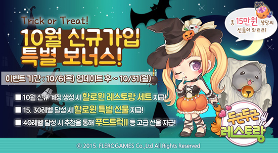 Ç÷¹·Î°ÔÀÓÁî´Â Àڻ簡 °³¹ß ¹× ¼ºñ½ºÇÏ´Â 'µÎ±ÙµÎ±Ù ·¹½ºÅä¶û for Kakao'¿¡¼ 10¿ù ÇÑ´Þ µ¿¾È ÇÒ·ÎÀ© ½ÃÁðÀ» ¸ÂÀÌÇØ À̺¥Æ®¸¦ ÁøÇàÇÏ°í ½Å±Ô ÄÜÅÙÃ÷¸¦ ¼±º¸Àδٰí 6ÀÏ(¸ñ) ¹àÇû´Ù. ¸ÕÀú, ´Ù°¡¿À´Â ÇÒ·ÎÀ© ½ÃÁðÀ» ±â³äÇØ ÇÒ·ÎÀ© À̺¥Æ®¸¦ ½Ç½ÃÇÑ´Ù. 10¿ù 1ÀÏ ÀÌÈÄ 'µÎ±ÙµÎ±Ù ·¹½ºÅä¶û'À» ½ÃÀÛÇÑ ½Å±Ô ÀÌ¿ëÀÚ¿¡°Ô ¡®ÇÒ·ÎÀ© ·¹½ºÅä¶û ¼¼Æ®¡¯¸¦ ÁõÁ¤ÇÑ´Ù. 15·¹º§À» ´Þ¼ºÇÑ ÀÌ¿ëÀÚ¿¡°Ô ÄÚÀÎÀ» Æ÷ÇÔÇÑ ¡®ÇÒ·ÎÀ© ¼ºÀå ¼¼Æ®¡¯¸¦ Á¦°øÇϰí, 30·¹º§±îÁö ¿Ã¶ó°£ ÀÌ¿ëÀÚ¿¡°Ô´Â ¡®ÇÒ·ÎÀ© Á¡ÇÁ ¼¼Æ®¡¯¸¦ Áö±ÞÇÑ´Ù. ½Å±Ô ÀÌ¿ëÀÚµéÀÌ 10¿ù Áß 40·¹º§ ÀÌ»ó ´Þ¼ºÇϸé Ãß÷À» ÅëÇØ ǪµåÆ®·° µî ǪÁüÇÑ º¸»ó ÇýÅÃÀ» Á¦°øÇÑ´Ù. ÇÒ·ÎÀ© À̺¥Æ®´Â ¿À´Â 31ÀϱîÁö ½Ç½ÃÇϸç, ÇÒ·ÎÀ© ¾ÆÀÌÅÛÀº À̺¥Æ® ±â°£¿¡¸¸ Ưº°È÷ ¸¸³ªº¼ ¼ö ÀÖ´Ù. Ç÷¹·Î°ÔÀÓÁî´Â 'µÎ±ÙµÎ±Ù ·¹½ºÅä¶û' ½Å±Ô ¾ÆÀÌÅÛÀ» 2Á¾À» ¼±º¸ÀδÙ. Ãß°¡µÈ ¡®µå¸µÅ© ºÐ¼ö´ë¡¯´Â °í±Þ½º·¯¿î ÀÎÅ׸®¾î È¿°ú¿¡ ¾Ë¹Ù ½Åû Ƚ¼ö³¢Áö Áõ°¡½ÃÄÑÁÖ´Â ¾ÆÀÌÅÛÀ̸ç, ¡®¾Ë¹Ù µå¸µÅ©¡¯´Â ¾Ë¹Ù ½ÅûȽ¼ö¸¦ »óÇâ ½ÃÄÑÁà ´õ ¸¹Àº Ä£±¸µé¿¡°Ô ¾Æ¸£¹ÙÀÌÆ®¸¦ ÇØÁÖ°í ¾Ë¹Ùºñ(º¸»ó)¸¦ ȹµæÇÒ ¼ö ÀÖ´Ù. 'µÎ±ÙµÎ±Ù ·¹½ºÅä¶û'Àº µ¿ÈdzÀÇ Ä³¸¯ÅÍ¿Í ¾Æ±âÀÚ±âÇÑ ±×·¡ÇÈÀÌ Æ¯Â¡ÀÎ ·¹½ºÅä¶û °æ¿µ SNG·Î Áö³ 2014³â 8¿ù 26ÀÏ Á¤½Ä Ãâ½Ã ÀÌÈÄ ÀÌ¿ëÀڵ鿡°Ô ²ÙÁØÈ÷ »ç¶û¹Þ°í ÀÖ´Ù. 'µÎ±ÙµÎ±Ù ·¹½ºÅä¶û'¿¡ ´ëÇÑ º¸´Ù ÀÚ¼¼ÇÑ ¼Ò½ÄÀº °ø½Ä Ä«Æä¸¦ ÅëÇØ È®ÀÎÇÒ ¼ö ÀÖ´Ù.