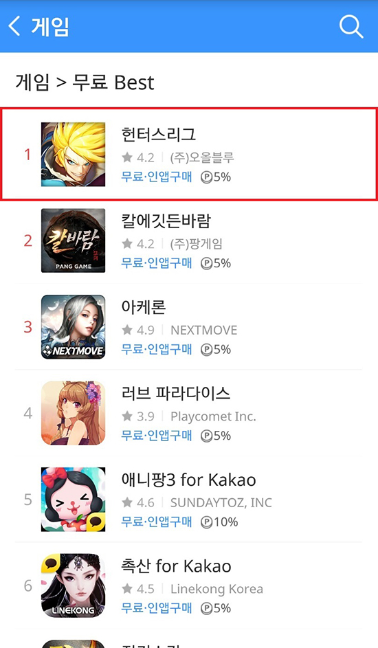 ¸ð¹ÙÀÏ RPG Àü¹®°³¹ß»ç ¿À¿Ãºí·çÀÇ ¸ð¹ÙÀÏ ÆÀ ¾×¼Ç RPG ¡®ÇåÅͽº¸®±×¡¯°¡ ¿ø½ºÅä¾î ¹«·á °ÔÀÓ Àα⠼øÀ§¿¡¼1À§¸¦ Â÷ÁöÇß´Ù°í ±ÝÀÏ(19ÀÏ) ¹àÇû´Ù.