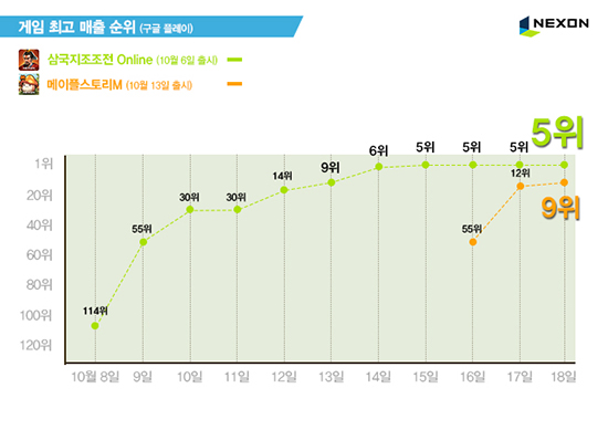 Áö³ 13ÀÏ Á¤½Ä Ãâ½ÃµÈ ¸ð¹ÙÀÏ MMORPG ¡®¸ÞÀÌÇýºÅ丮M¡¯ÀÌ Ãâ½Ã 6ÀÏ ¸¸¿¡ ±¸±Û Ç÷¹ÀÌ ¸ÅÃâ ¼øÀ§ TOP 10¿¡ ÁøÀÔÇß´Ù. ±¸±Û Ç÷¹ÀÌ ¸ÅÃâ TOP 10 ¼øÀ§ ³», Áö³ 6ÀÏ Ãâ½ÃµÈ ¡®»ï±¹ÁöÁ¶Á¶Àü Online¡¯ÀÌ Ãâ½Ã 8ÀÏ ¸¸¿¡ 10À§ ±Ç ³» ÁøÀÔ(9À§), 10ÀÏ ¸¸¿¡ ¼øÀ§ 5À§¸¦ ±â·ÏÇßÀ¸¸ç, ¡®FIFA ¿Â¶óÀÎ 3 M¡¯ÀÌ 6À§¸¦ ±â·ÏÇß´Ù. ½ÅÀÛ ¡®¸ÞÀÌÇýºÅ丮M¡¯Àº À¯Àúµé¿¡°Ô Àα⠿¶óÀΰÔÀÓ ¡®¸ÞÀÌÇýºÅ丮¡¯ÀÇ ¾Æ±âÀÚ±âÇÑ Ä³¸¯ÅÍ¿Í ±×·¡ÇÈ, °ÔÀÓÀÇ ¹è°æÀÌ µÇ´Â ¡®¸ÞÀÌÇÿùµå¡¯ µî ¿øÀÛÀÇ Àç¹Ì¿ä¼Ò¿Í Ç÷¹ÀÌ °æÇèÀ» ¸ð¹ÙÀÏ Ç÷§ÆûÀ¸·Î ¿Ï¼ºµµ¸¦ ³ô¿© ±¸ÇöÇß´Ù´Â Æò°¡¸¦ ¹Þ°í ÀÖÀ¸¸ç, ¡®»ï±¹ÁöÁ¶Á¶Àü Online¡¯Àº ÄÚ¿¡ÀÌÅ×Å©¸ð°ÔÀÓ½ºÀÇ °·ÂÇÑ ¿øÀÛ IP¿Í ³Ø½¼ÀÇ °³¹ß·ÂÀÌ ´õÇØÁ® »ï±¹Áö ÆÒµéÀ» Æ÷ÇÔÇÑ ¸¹Àº ÀÌ¿ëÀڵ鿡°Ô ȯ¿µ ¹Þ°í ÀÖ´Â °¡¿îµ¥ dz¼ºÇÑ ÄÜÅÙÃ÷¿Í °ÔÀÓ¼ºÀ» ³ô°Ô Æò°¡ ¹ÞÀ¸¸ç ÈïÇà¸ôÀÌ ÁßÀÌ´Ù.