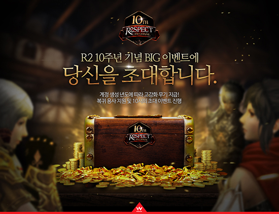 À¥Á¨ÀÇ PC MMORPG ¡®R2(Reign of Revolution)¡¯°¡ ´ë±Ô¸ð ÇÁ·Î¸ð¼Ç ¹× ¾÷µ¥ÀÌÆ® Á¤º¸¸¦ ¾Ë¸®±â À§ÇÑ Æ¯º°ÆäÀÌÁö¸¦ °ø°³Çß´Ù. À¥Á¨Àº ¿À´Ã(10¿ù20ÀÏ), ¡®R2¡¯ÀÇ Æ¯º° À̺¥Æ®ÆäÀÌÁö(http://r2.webzen.co.kr/events/R2spect/Gate)¸¦ ¿°í ¿À´Â 10¿ù 28ÀÏ¿¡ Àû¿ëµÇ´Â Á¤½Ä¼ºñ½º 10Áֳ⠱â³ä ´ë±Ô¸ð ÇÁ·Î¸ð¼ÇÀÎ ¡®R2SPECT FESTIVAL¡¯¿¡ ´ëÇÑ Á¤º¸¿Í ½Å±Ô ¾÷µ¥ÀÌÆ® °ü·Ã ³»¿ëÀ» °øÁöÇß´Ù. ¸ÕÀú, À¥Á¨Àº ¿ÃÇØ 10¿ù·Î ¼ºñ½º 10ÁÖ³âÀ» ¸ÂÀº ¡®R2¡¯ÀÇ Àå¼ö ȸ¿øµéÀ» ´ë»óÀ¸·Î ¡®À̺¥Æ® ¼±¹° »óÀÚ¸¦ µå¸³´Ï´Ù!¡¯ À̺¥Æ®¸¦ ÁøÇàÇÑ´Ù. ¡®R2¡¯°¡ Á¤½Ä¼ºñ½º¸¦ ½ÃÀÛÇÑ 2006³âºÎÅÍ ¿ÃÇØ(2016³â)±îÁö °ÔÀ̸ӵéÀÌ °èÁ¤À» »ý¼ºÇÑ ÀÏÀÚ¿¡ µû¶ó Ŭ·¡½ºº° °È ¹«±â¸¦ Â÷µî Áö±ÞÇÑ´Ù. ¶ÇÇÑ À¥Á¨Àº Áö³ 3¿ù 1ÀϺÎÅÍ 10¿ù 1ÀϱîÁö Á¢¼Ó ÀÌ·ÂÀÌ ¾ø¾ú´ø °ÔÀÓ È¸¿øµéÀ» ´ë»óÀ¸·Î º¹±ÍÇÑ È¸¿ø Àü¿ø¿¡°Ô °ÔÀÓ ÀûÀÀÀ» µµ¿ÍÁÙ ¡®30ÀÏ ¹«·á Á¤¾×±Ç¡¯, ¡®+5 »ç½½ ¹æ¾î±¸ ¼¼Æ®¡¯ µîÀÇ ¾ÆÀÌÅÛµéÀ» Áö¿øÇÑ´Ù. À̺¥Æ® ±â°£ Áß ¸ÅÀÏ ¿ÀÀü 10½Ã~10½Ã 10ºÐ°ú ¿ÀÈÄ 10½Ã~10½Ã 10ºÐ »çÀÌ¿¡ °¢°¢ °ÔÀÓ¿¡ Á¢¼ÓÇÑ È¸¿øµé¿¡°Ô´Â ¡®Å¾çÀÇ ¸ñ°ÉÀÌ¡¯ µî °í±Þ¾ÆÀÌÅÛÀ» ±³È¯ÇÒ ¼ö ÀÖ´Â À̺¥Æ® ƼÄÏÀ» µµ¿ì¹Ì ij¸¯ÅÍ ¡®È¦¸®¡¯¸¦ ÅëÇØ Á¦°øÇÑ´Ù. À̿ܿ¡µµ À¥Á¨Àº ¿À´Â 10¿ù 27ÀÏ¿¡ Àû¿ëµÇ´Â ¡®¾Æ·¹³ª¡¯ ÄÜÅÙÃ÷ ¾÷µ¥ÀÌÆ®¿¡ ´ëÇÑ Á¤º¸µµ Ưº° ÆäÀÌÁö¸¦ ÅëÇØ °ø°³Çß´Ù. À̹ø ¾÷µ¥ÀÌÆ®¿¡¼´Â ¸ðµç ¼¹öÀÇ °ÔÀÓȸ¿øµéÀÌ Âü°¡ÇØ ½Ç½Ã°£À¸·Î 5´ë5 ¹× 10´ë10 ½ÂºÎ¸¦ °Ü·ç´Â ¡®¾Æ·¹³ª °ÝÀü¡¯°ú ±æµå¿øµé°ú º¸½º ¸ó½ºÅ͸¦ »ç³ÉÇÒ ¼ö ÀÖ´Â ¡®¾Æ·¹³ª º¸½ºÀü¡¯À» »õ·Ó°Ô ¼±º¸ÀδÙ. ÇÑÆí, À¥Á¨Àº ¿À´Â 10¿ù 25ÀϺÎÅÍ ¡®R2Match 2016¡¯À» ½ÃÀÛÇÑ´Ù. ÃÑ 32°³ÆÀÀ¸·Î ±¸¼ºµÈ °ÔÀÓ È¸¿øµé °£ 5´ë5 ¿Â¶óÀÎ ´ë°áÀ» ÁøÇà, 2½ÂÀ» ¸ÕÀú ´Þ¼ºÇÑ ÆÀÀÌ ´ÙÀ½ ´ëÀü¿¡ ÁøÃâÇÏ°Ô µÇ°í 4°ºÎÅÍ °á½Â±îÁö´Â ¿ÀÇÁ¶óÀÎ ´ëȸ¸¦ ÅëÇØ ¿ì½ÂÀ» °¡¸®´Â 5ÆÇ 3¼±½ÂÁ¦ ¹æ½ÄÀ¸·Î ÁøÇàµÈ´Ù. ¡®R2¡¯ÀÇ ¡®R2SPECT FESTIVAL¡¯¿Í ±â³ä À̺¥Æ®¿¡ ´ëÇÑ º¸´Ù ÀÚ¼¼ÇÑ »çÇ×Àº ¡®R2¡¯ °ø½Ä ȨÆäÀÌÁö(http://R2.webzen.co.kr/)¿¡¼ È®ÀÎÇÒ ¼ö ÀÖ´Ù.