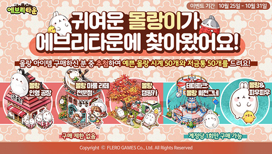 Ç÷¹·Î°ÔÀÓÁî´Â Àڻ簡 °³¹ß ¹× ¼ºñ½ºÇÏ´Â °¨¼º SNG '¿¡ºê¸®Å¸¿î for Kakao'¿Í Àαâ ij¸¯ÅÍ ¡®¸ô¶û¡¯ÀÇ Äݶ󺸷¹À̼ÇÀ» ÁøÇàÇÑ´Ù°í 25ÀÏ(È) ¹àÇû´Ù. ¡®¸ô¶û¡¯Àº Âý½Ò¶±À» ¿¬»ó½ÃŰ´Â ÅëÅëÇÔ ¶§¹®¿¡ ¡®µÅÁö Åä³¢¡¯¶ó ºÒ¸®´Â ±¹»ê Àαâ ij¸¯ÅͷΠīī¿ÀÅå À̸ðƼÄÜ ´©Àû ´Ù¿î·Îµå 40¸¸°ÇÀ» ±â·ÏÇÏ°í ³×À̹ö ½ºÆ¼Ä¿ ¼ºñ½º·Îµµ ¸¹Àº Àα⸦ ¾ò°í ÀÖ´Ù. ¶ÇÇÑ, ÇÁ¶û½º, ¹Ì±¹, ÀϺ» µî 150¿© °³ ±¹°¡¿¡¼ ¾Ö´Ï¸ÞÀ̼ÇÀ¸·Î ¹æ¿µµÇ¸ç ÃÖ±Ù Àαâ¸ôÀ̸¦ Çϰí ÀÖ´Â ÅäÁ¾ ij¸¯ÅÍ´Ù. Ç÷¹·Î°ÔÀÓÁî´Â À̹ø Äݶ󺸷¹À̼ÇÀ¸·Î '¿¡ºê¸®Å¸¿î'¿¡¼ ´Ù¾çÇÑ ¡®¸ô¶û¡¯ ¾ÆÀÌÅÛÀ» ¼±º¸ÀδÙ. ¡®¸ô¶û ÀÎÇü °øÀ塯°ú ¡®¸ô¶û ¸¶·Õ ¶ó¶¼ Àü¹®Á¡¡¯, ¡® ¸ô¶û ȸÀü±×³×¡¯, ¡®¸ô¶û Ä·ÇÎÄ«¡¯ ±×¸®°í ºô¸®Àú ¡®¸ô¶û & ÇÇ¿ìÇǿ졯±îÁö ÃÑ 5Á¾À» ¸¸³ªº¼ ¼ö ÀÖ´Ù. 10¿ù 31ÀϱîÁö ¡®¸ô¶û¡¯ ¾ÆÀÌÅÛÀ¸·Î ¸¶À»À» ²Ù¹Î ÀÌ¿ëÀÚ¸¦ ´ë»óÀ¸·Î Ãß÷À» ÅëÇØ ¡®¸ô¶û¡¯ ij¸¯ÅÍ °æÇ°À» ÁõÁ¤ÇÏ´Â À̺¥Æ®µµ ÆîÄ£´Ù. ÀÌ¿Í ÇÔ²² Ç÷¹·Î°ÔÀÓÁî´Â '¿¡ºê¸®Å¸¿î'ÀÇ ½Å±Ô ÄÜÅÙÃ÷ ¾÷µ¥ÀÌÆ®µµ ½Ç½ÃÇÑ´Ù. ÀÌ¿ëÀÚ°¡ ±¸¸ÅÇÏ°í ½ÍÀº »ý»êǰÀ» ÁÖ¹®Çϸé, À̸¦ º» ´Ù¸¥ ÀÌ¿ëÀÚ°¡ ÁÖ¹®ÇÑ ÀÌ¿ëÀÚ¿¡°Ô ÇØ´ç »ý»êǰÀ» ÆÇ¸ÅÇÏ´Â ¡®»ð´Ï´Ù¡¯ ±â´ÉÀÌ Ãß°¡µÈ ¡®±³¿ª¼Ò ½Ã½ºÅÛ¡¯°ú ¸ÅÀÏ ±âºÎ±ÝÀ» ¹Þ°í Ä£±¸µéÀÇ ºÀ»çȰµ¿À¸·Î º¸»óÀÌ Ä¿Áö´Â ¡®°ø°ø½Ã¼³ ½Ã½ºÅÛ¡¯À» Ãß°¡ÇÑ´Ù. ¶ÇÇÑ, ÇÒ·ÎÀ© ½ÃÁðÀ» ¸ÂÀÌÇØ ¡®ÇÒ·ÎÀ© ÄíŰ Àü¹®Á¡¡¯°ú ¡®ÇÒ·ÎÀ© ÆËÄÜ Àü¹®Á¡¡¯ µî »ý»ê½Ã¼³ 2Á¾À» ¼±º¸ÀÌ°í ¸¸·¹º§À» 95·¹º§·Î È®ÀåÇÑ´Ù. ´ÙÀ½ ¾÷µ¥ÀÌÆ®±îÁö ·£´ý¹Ú½º¿¡¼´Â ºô¸®Àú ¡®µ¹Ã¼¡¯¸¦ ¸¸³ªº¼ ¼ö ÀÖ´Ù. °¨¼º SNG '¿¡ºê¸®Å¸¿î'Àº Áö³ 2013³â 2¿ù ¼ºñ½º¸¦ ½ÃÀÛÇØ 700¸¸ ÀÌ¿ëÀÚ¸¦ È®º¸Çϸç, 3³âÀÌ»ó ¾ÈÁ¤ÀûÀÎ ¼ºñ½º¸¦ À̾°í ÀÖ´Â ´ëÇѹα¹ ´ëÇ¥ SNGÀÌ´Ù. ÀÌ ¹Û¿¡ ÀÚ¼¼ÇÑ À̺¥Æ® ¹× ¾÷µ¥ÀÌÆ® ³»¿ëÀº °ø½Ä Ä«Æä¿¡¼ È®ÀÎ ÇÒ ¼ö ÀÖ´Ù.