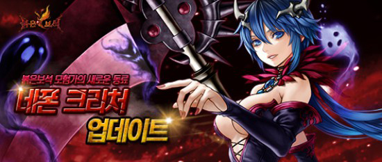 ¿¤¿£ÄÉÀÌ·ÎÁ÷ÄÚ¸®¾Æ(ÀÌÇÏ ¿¤¿£ÄÉÀÌ)°¡ °³¹ßÇÏ°í ¼ºñ½ºÇÏ´Â ¿Â¶óÀÎ °ÔÀÓ ¡®ºÓÀºº¸¼®¡¯ÀÌ ±âÁ¸ ¹Ì´ÏÆê À̿ܿ¡ ÇÑ Á¾·ù¸¦ ´õ µ¥¸®°í ´Ù´Ò ¼ö ÀÖ´Â ½Å±Ô ÆêÀÎ ¡®³×Æù Å©¸®Ã³¡¯¸¦ 10¿ù 26ÀÏ(¼ö)°ú 11¿ù 2ÀÏ(¼ö)¿¡ ³ª´©¾î ¾÷µ¥ÀÌÆ® Çß´Ù°í ¹àÇû´Ù. À̹ø¿¡ ¾÷µ¥ÀÌÆ® µÇ´Â ³×Æù Å©¸®Ã³´Â ÃÑ 100¿©Á¾À¸·Î ÄÚÄïÀ̶ó´Â ¾Ë ¸ð¾çÀÇ ¾ÆÀÌÅÛ¿¡¼ ȹµæÇÒ ¼ö ÀÖÀ¸¸ç, ±æµå ´øÀü¿¡¼ ȹµæ °¡´ÉÇÑ ¡®Æäºí ÄÚÄ°ú ij½¬·Î ±¸¸Å°¡ °¡´ÉÇÑ ¡®¼Ö¶ó ÄÚÄ 2Á¾·ù°¡ ÀÖ´Ù. ±âÁ¸ ¹Ì´ÏÆê°ú´Â º°µµ·Î ÇൿÇϸç, ÀüÅõ´Â ¹°·Ð ij¸¯ÅÍÀÇ ´É·ÂÄ¡¸¦ »ó½Â½ÃÄÑÁÖ´Â È¿°úµµ Á¸ÀçÇÑ´Ù. ¶ÇÇÑ Èû, Áö½Ä, °Ç°, ¼Æ÷Æ® 4°¡Áö ŸÀÔÀ¸·Î ÀÌ·ç¾îÁ® ÀÖÀ¸¸ç, ÀϹÝ, Èñ±Í, ¿µ¿õ, ȯ»ó, Àü¼³±îÁö ÃÑ 5µî±ÞÀ¸·Î ºÐ·ùµÇ¾î ÀÖ´Ù. Ç÷¹À̾î¿Í µ¿ÀÏÇÏ°Ô ´É·ÂÄ¡°¡ ºÎ¿©µÇ¾î ÀÖÀ¸¸ç ŸÀÔ°ú µî±Þº°·Î ´É·ÂÄ¡ ¹èºÐÀÌ ´Ù¸£°Ô ¼³Á¤µÇ¾î ÀÖ°í, µî±Þº°·Î 60·¹º§¿¡¼ ÃÖ´ë 100·¹º§±îÁö À°¼ºÀÌ °¡´ÉÇÏ´Ù. ÇÑ ³×Æù Å©¸®Ã³ ´ç ÃÖ´ë 1°³ÀÇ ¸ÞÀÎ ½ºÅ³°ú 2°³ÀÇ ¼ºê ½ºÅ³À» º¸À¯Çϰí ÀÖÀ¸¸ç, ¼Ö¶ó ÄÚÄïÀ¸·Î ¾òÀº Å©¸®Ã³´Â ³·Àº È®·ü·Î °ñµç ¸Þ´ÞÀ» ȹµæÇÒ ¼ö ÀÖ´Ù. ÀÌ °ñµç ¸Þ´ÞÀº ½ºÅÈ¿¡ Àû¿ëµÉ °æ¿ì ·¹º§¾÷ ½Ã Ãß°¡·Î 2Æ÷ÀÎÆ®¸¦ ȹµæÇϸç, ½ºÅ³¿¡ Àû¿ëµÉ °æ¿ì ÇØ´ç ½ºÅ³ ·¹º§ÀÌ 5Áõ°¡µÇ´Â È¿°ú¸¦ ¾ò´Â´Ù. ºÓÀºº¸¼® ³×Æù Å©¸®Ã³¿¡ ´ëÇÑ ÀÚ¼¼ÇÑ ³»¿ëÀº °ø½Ä ȨÆäÀÌÁö(http://redstone.logickorea.co.kr)¿¡¼ È®ÀÎÇÒ ¼ö ÀÖ´Ù.