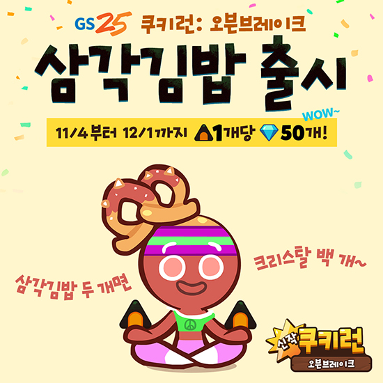 µ¥ºê½Ã½ºÅÍÁî´Â Àڻ簡 °³¹ß ¹× ¼ºñ½ºÇÏ´Â ¸ð¹ÙÀÏ ·±°ÔÀÓ ¡®ÄíŰ·±: ¿Àºìºê·¹ÀÌÅ©(Cookie Run: OvenBreak)¡¯°¡ GS25¿Í ÇÔ²² »ï°¢±è¹ä ÇÁ·Î¸ð¼ÇÀ» ½Ç½ÃÇÑ´Ù°í 4ÀÏ ¹àÇû´Ù. ¿À´Â 12¿ù 1ÀϱîÁö ¾à ÇÑ ´Þ°£ Àü±¹ GS25 ÆíÀÇÁ¡À» ÅëÇØ ÂüÄ¡¸¶¿ä³×Áî, ÀüÁÖºñºö, Ä¥¸®»õ¿ìººÀ½ µî ¡®ÄíŰ·±: ¿Àºìºê·¹ÀÌÅ©¡¯ À̺¥Æ® ³»¿ëÀÌ ´ã±ä Àα⠻ﰢ±è¹ä 6Á¾À» ¼±º¸ÀδÙ. ÇÁ·Î¸ð¼Ç ±â°£ µ¿¾È »ï°¢±è¹äÀ» ±¸¸ÅÇϰí, Æ÷ÀåÁö Áß¾Ó¿¡ À§Ä¡ÇÑ ½ºÅ©·¡Ä¡ ÄíÆù ¹øÈ£¿Í °ÔÀÓ ³» »ç¿ëÀÚ ID¸¦ À̺¥Æ® ÆäÀÌÁö(http://ckie.run)¿¡ ÀÔ·ÂÇϸé Å©¸®½ºÅ» 50°³°¡ Á¦°øµÈ´Ù. »ç¿ëÀÚ ID´Â ¡®ÄíŰ·±: ¿Àºìºê·¹ÀÌÅ©¡¯ °ÔÀÓ È¸é »ó´ÜÀÇ [Ä£±¸] ¾ÆÀÌÄÜ Å¬¸¯ – [Ä£±¸ Ãß°¡] ¸Þ´º¿¡¼ È®ÀÎ °¡´ÉÇϸç, ÇÑ °èÁ¤´ç ÃÖ´ë 20ȸ±îÁö ÄíÆùÀ» ÀÔ·ÂÇÒ ¼ö ÀÖ´Ù. ´õºÒ¾î GS25 ¸ÅÀå ³» ¼³Ä¡µÈ GSTV¸¦ ÅëÇØ, ±Í¿©¿î Äí۵éÀÌ ºÎ¾ý¿¡¼ ¸ô·¡ Àͻ콺·¯¿î ÃãÀ» Ãß´Â È«º¸ ¿µ»óÀÌ ³ëÃâµÇ´Â µî ¡®ÄíŰ·±: ¿Àºìºê·¹ÀÌÅ©¡¯ÀÇ ´õ¿í ´Ùä·Î¿î ¸ð½Àµµ ¸¸³ªº¼ ¼ö ÀÖ°Ô µÉ ¿¹Á¤ÀÌ´Ù. ¡®ÄíŰ·±: ¿Àºìºê·¹ÀÌÅ©¡¯´Â Áö³´Þ 27ÀÏ ±Û·Î¹ú Á¤½Ä ¼ºñ½º¸¦ ½ÃÀÛÇÑ ¸ð¹ÙÀÏ ·±°ÔÀÓÀ¸·Î, ¡ãÀü¼¼°è À¯Àúµé°úÀÇ ½Ç½Ã°£ ´ëÀü ¡ã1:1 Ä£±¸ ´ëÀü ¡ã´Ù¾çÇÑ ÄÁ¼ÁÀÇ ·£µå ¡ã°¢ 30¿©Á¾ÀÇ ÄíŰ¿Í Æê µî °æÀïÇÏ°í ¼ºÀåÇØ°¡´Â Àç¹Ì¸¦ »õ·Ó°Ô µµÀÔÇÑ ÄíŰ·± IP(ÁöÀûÀç»ê±Ç) ±â¹ÝÀÇ ½ÅÀÛÀÌ´Ù. Ãâ½Ã Á÷ÈÄ ±¹³» ¾ÖÇà ¾Û½ºÅä¾î¿Í ±¸±Û Ç÷¹ÀÌ ¹«·á °ÔÀÓ ¼øÀ§¿¡¼ 1À§¸¦ ±â·ÏÇϰí, 3Àϸ¸¿¡ ±Û·Î¹ú 100¸¸ ´Ù¿î·Îµå¸¦ µ¹ÆÄÇÏ´Â µî ¼øÁ¶·Î¿î Ãâ¹ßÀ» º¸À̰í ÀÖ´Ù. ¡®ÄíŰ·±: ¿Àºìºê·¹ÀÌÅ©¡¯¿¡ °üÇÑ ÀÚ¼¼ÇÑ »çÇ×Àº °ø½Ä ÆäÀ̽ººÏ(www.facebook.com/CookieRunKR)¿¡¼ È®ÀÎÇÒ ¼ö ÀÖ´Ù.