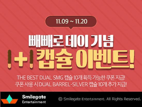 ½º¸¶ÀϰÔÀÌÆ®´Â ¿Â¶óÀÎ FPS ¡®Å©·Î½ºÆÄÀ̾¿¡¼ ÀÌ´Þ 20ÀϱîÁö ¡®»©»©·Îµ¥ÀÌ ±â³ä 1+1 ĸ½¶ À̺¥Æ®¡¯¸¦ ÁøÇàÇÑ´Ù. ¡®»©»©·Îµ¥ÀÌ ±â³ä 1+1ĸ½¶ À̺¥Æ®¡¯´Â À̺¥Æ® ±â°£ °ø°³µÈ ÄíÆù »ç¿ë ½Ã ij½Ã ĸ½¶ 10°³°¡ Áö±ÞµÇ¸ç ÄíÆùÀ» »ç¿ëÇÑ ÀÌ¿ëÀÚ¿¡°Ô Ãß°¡·Î 10°³ÀÇ Ä³½Ã ĸ½¶À» Áö±ÞÇÏ´Â À̺¥Æ®ÀÌ´Ù. À̺¥Æ® ±â°£ µ¿¾È ÄíÆùÀ» »ç¿ëÇÑ ÀÌ¿ëÀÚ ¸ðµÎ¿¡°Ô ij½Ã ĸ½¶ 10°³°¡ Áö±ÞµÇ¸ç, ÀÌ¿ëÀÚµéÀº ij½Ã ĸ½¶À» ÀÌ¿ëÇØ ¿µ±¸¹«±âÀÎ ¡®´õº£½ºÆ®µà¾ó¿¡½º¿¥Áö(THE BEST DUAL SMG)¡¯¸¦ ȹµæ ÇÒ ¼ö ÀÖ´Ù. À̺¥Æ® ±â°£ ³» ÄíÆùÀ» »ç¿ëÇÑ ÀÌ¿ëÀÚ¿¡°Ô´Â ¿µ±¸¹«±â ¡®µà¾ó¹è·²½Ç·¯(DUAL BARREL-SILVER)¡¯¸¦ ȹµæ ÇÒ ¼ö Àִ ij½Ã ĸ½¶ 10°³°¡ Ãß°¡·Î Áö±ÞµÈ´Ù. ij½Ã ĸ½¶Àº °ÔÀÓ ³» ij½Ã ĸ½¶ ¼¥¿¡¼ Ãß°¡·Î ±¸¸Å °¡´ÉÇϸç ij½Ã ĸ½¶ 1°³ ¿ÀÇ ½Ã ¿µ±¸ Ãѱâ, ±â°£Á¦ Ãѱâ, ±â°£Á¦ Åõô ¹«±â µî ´Ù¾çÇÑ ¾ÆÀÌÅÛ Áß¿¡¼ 3°³ÀÇ ¾ÆÀÌÅÛÀ» ¾òÀ» ¼ö ÀÖ´Ù. ¡®Å©·Î½ºÆÄÀ̾´Â »©»©·Îµ¥ÀÌ ±â³ä À̺¥Æ®¿Í ÇÔ²² ¡®11¿ù °¡À»¸ÂÀÌ ÁÖ¸» ÇÖŸÀÓ¡¯ À̺¥Æ®µµ ÇÔ²² ÁøÇàÇÑ´Ù. ¿À´Â 27ÀϱîÁö ÁøÇàµÇ´Â ¡®11¿ù °¡À»¸ÂÀÌ ÁÖ¸» ÇÖŸÀÓ¡¯ À̺¥Æ®´Â ¸ÅÁÖ ±Ý¿äÀϰú ÁÖ¸»¿¡¸¸ »ç¿ë °¡´ÉÇÑ 1,000ij½Ã ÄíÆù¹øÈ£°¡ ¸ÅÁÖ ±Ý¿äÀÏ ¿ÀÈÄ 4½Ã ÀÌÈÄ °ø°³µÇ¸ç, ÀÌ ÄíÆùÀ» »ç¿ëÇÑ ÀÌ¿ëÀÚ´Â ¿µ±¸ ¹«±âÀÎ ¡®¼¼ºñÁö-ÀÏÀϰøºñ¿¡ÀÌ-½º³ë¿ì-¾¾¿¡ÀÌ¿¥µð ÁöÇÇ¡¯(SAVAGE- 110BA- SNOW CAMD GP)¡¯¿Í ´Ù¾çÇÑ ¾ÆÀÌÅÛÀ» ȹµæÇÒ ¼ö Àִ ĸ½¶ 10°³¸¦ Ãß°¡·Î ¹ÞÀ» ¼ö ÀÖ´Ù. ¶ÇÇÑ ÁÖ¸» °ÔÀӸӴϰ¡ Áö±ÞµÇ¸ç, °æÇèÄ¡ ºÎ½ºÅͰ¡ 3¹è¿Í °ÔÀÓ ³»¿¡¼ µ¥½º(DAETH) °¡ ³²Áö ¾Ê´Â ¡®µ¥½º¹«±â·Ï¡¯µµ Àû¿ëµÈ´Ù. ÇÑÆí, ¡®Å©·Î½ºÆÄÀ̾´Â ½º¸¶ÀϰÔÀÌÆ®°¡ 2007³âºÎÅÍ ¼ºñ½ºÇÑ ¿Â¶óÀÎ FPS·Î µ¿Á¢ 800¸¸ ¸ÅÃâ 1Á¶ 5000¾ï¿ø, ´©Àûȸ¿ø 6.5¾ï¸íÀ» º¸À¯ÇßÀ¸¸ç, Àü¼¼°è 80¿©°³ ±¹°¡¿¡¼ ¼ºñ½ºµÇ°í ÀÖ´Ù.