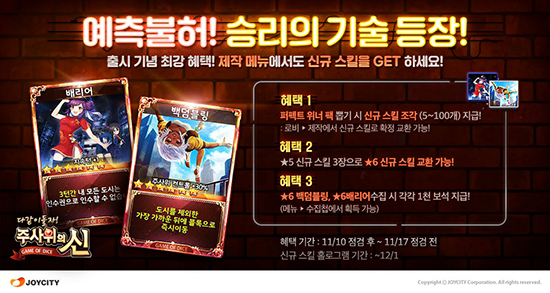 Á¶ÀÌ½ÃÆ¼´Â ÀÚü °³¹ßÇÑ ¸ð¹ÙÀÏ º¸µå°ÔÀÓ ¡®ÁÖ»çÀ§ÀÇ ½Å¡¯¿¡¼ Ãß¼ö°¨»çÀý ¸ÂÀÌ À̺¥Æ®¸¦ ½Ç½ÃÇÑ´Ù°í 10ÀÏ ¹àÇû´Ù. ¿ì¼± ÇÏ·ç 1¹ø °ÔÀÓÀ» 3ÆÇ Ç÷¹ÀÌÇÏ´Â À¯Àú¸¦ ´ë»óÀ¸·Î ÃÖ´ë ¡®10¸¸°ñµå(°ÔÀÓ¸Ó´Ï)¡¯¿Í ¡®50º¸¼®(°ÔÀÓij½¬)¡¯, ¡®6¼º ½ºÅ³Ä«µå¡¯ µî ǪÁüÇÑ ¾ÆÀÌÅÛÀÌ ´ã°ÜÀÖ´Â ¡®Ãß¼ö°¨»çÀý ±â³ä ĸ½¶¡¯À» ÁõÁ¤ÇÑ´Ù. ¶ÇÇÑ ¸ÊÀ» ÅëÇØ ½Å±Ô ¾ÖÀåǰ ¡®Çü´ÔÀÇ µå¸±¡¯À» ºñ·ÔÇØ ¡®°ñµå¡¯, ¡®º¸¼®¡¯, ¡®·°¼Å¸® Æ÷ÀÎÆ®¡¯ µî ¿©·¯ ¾ÆÀÌÅÛ°ú ±³È¯ÇÒ ¼ö ÀÖ´Â ¡®Ä¥¸éÁ¶¡¯¿Í ¡®Àü¼³ÀÇ ³¯°³ Ä¥¸éÁ¶¡¯¸¦ Á¦°øÇÏ´Â À̺¥Æ®¸¦ ÁøÇàÇÑ´Ù. ÀÌ¿Í ÇÔ²² ÆÀÀü¿¡¼ ÆÄ»êÇßÀ» ¶§ ¾Æ±ºÀÇ ºÎµ¿»ê ÅëÇà·á¸¦ Áõ°¡½ÃÄÑÁÖ´Â ½Å±Ô ¾ÖÀåǰ ¡®Çü´ÔÀÇ µå¸±¡¯À» ¼±º¸¿´´Ù. ÀÏÁ¤ ½Ã°£ µ¿¾È »ó´ë¹æÀÌ »ç¿ëÇÏ´Â Àμö ¾ÆÀÌÅÛÀÌ ³» µµ½Ã¿¡ Àû¿ëµÉ ¼ö ¾øµµ·Ï Á¦ÇÑÇÏ´Â ¡®¹è¸®¾î¡¯¿Í µµ½Ã¸¦ Á¦¿ÜÇÑ °¡Àå °¡±î¿î µÚÆíÀÇ ºí·ÏÀ¸·Î Áï½Ã À̵¿ÇÏ´Â ¡®¹é´ýºí¸µ¡¯ ½ºÅ³Ä«µå 2Á¾µµ »õ·Ó°Ô Ãß°¡Çß´Ù. ¸ð¹ÙÀÏ º¸µå°ÔÀÓ ¡®ÁÖ»çÀ§ÀÇ ½Å¡¯Àº ±¸±Û Ç÷¹ÀÌ ¹× ¾ÖÇà ¾Û½ºÅä¾î, ¿ø½ºÅä¾î¸¦ ÅëÇØ ´©±¸³ª ´Ù¿î·Îµå ¹ÞÀ» ¼ö ÀÖÀ¸¸ç, °ÔÀÓ¿¡ ´ëÇÑ º¸´Ù ÀÚ¼¼ÇÑ ³»¿ëÀº °ø½Ä ȨÆäÀÌÁö(http://god.joycity.com)¿¡¼ È®ÀÎÇÒ ¼ö ÀÖ´Ù.