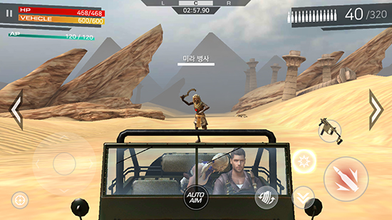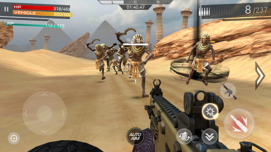 ¾×¼ÇÀº Á÷°üÀûÀÎ ÄÁÆ®·Ñ·¯¸¦ Ȱ¿ëÇÑ Á¶ÁØ, °ø°Ý, ¹æ¾î µî °Ç½´ÆÃ °ÔÀÓÀÇ Æ÷¸ËÀ» ±âº»À¸·Î Çϸç, ÀÚµ¿ Á¶ÁØÀÌ ÀÖ¾î FPS¿¡ Àͼ÷Ä¡ ¾ÊÀº À¯Àúµµ ½±°Ô Ç÷¹ÀÌ °¡´ÉÇϵµ·Ï Çß´Ù. ÆøÆÄ, Àå¾Ö¹° ÇÇÇϱâ, º¸½ºÀü, º¸³Ê½º ½ºÅ×ÀÌÁö µî FPSÀÇ ´Ù¾çÇÑ ÄÜÅÙÃ÷¸¦ ¸ð¹ÙÀÏ·Î ¿Å°Ü¿Ô´Ù. ¾Æ¿ï·¯ ´Ù¾çÇÑ Â÷·®°ú Ãѱâ, ij¸¯ÅÍ ¹× ÄÚ½ºÆ¬À» °í¸£°í À¯¹°À» ¸ð¾Æ À̸¦ °ÈÇÏ¸ç ³ª¸¸ÀÇ Ä³¸¯Å͸¦ ¸¸µé ¼ö ÀÖ´Ù.
