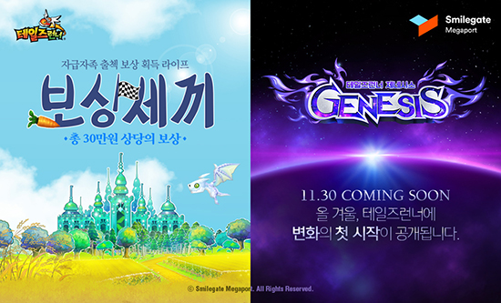 ½º¸¶ÀϰÔÀÌÆ®´Â Àα⠿¶óÀÎ ¾×¼Ç ·¹ÀÌ½Ì °ÔÀÓ ¡®Å×ÀÏÁî·±³Ê¡¯(°³¹ß»ç ¶ó¿Â¿£ÅÍÅ×ÀÎ¸ÕÆ®)¿¡¼ ¡®ÀÚ±ÞÀÚÁ· Ãâý º¸»óȹµæ ¶óÀÌÇÁ! º¸»ó¼¼³¢¡¯ À̺¥Æ®¸¦ ½Ç½ÃÇÑ´Ù°í 23ÀÏ(¼ö) ¹àÇû´Ù. ¾Æ¿ï·¯, Å×ÀÏÁî·±³ÊÀÇ »õ·Î¿î º¯È¸¦ ¿¹°íÇÏ´Â ¡®Å×ÀÏÁî·±³Ê Á¦³×½Ã½º¡¯¸¦ °ø°³ÇßÀ¸¸ç, Ä¿Çø®±× ½ÃÀÛ ¼Ò½Äµµ ¾Ë·È´Ù. À̹ø º¸»ó¼¼³¢ À̺¥Æ®·Î ¸ðµç À¯ÀúµéÀº ¸ÅÀÏ Å×ÀÏÁî·±³Ê¸¦ Ç÷¹ÀÌÇϸé, ´©Àû Ãâ¼®¿¡ µû¶ó ÃÑ 30¸¸¿ø »ó´çÀÇ °ÔÀÓ ¾ÆÀÌÅÛÀ» ȹµæÇÒ ¼ö ÀÖ´Ù. º¸´Ù ±¸Ã¼ÀûÀ¸·Î ¿ì¼±, ¡®º¸»óµµ dz³âÀÌ´Ù¡¯ À̺¥Æ®¸¦ ÅëÇØ À¯ÀúµéÀº Á¢¼Ó¸¸ ÇØµµ Áï½Ã 10¸¸¿ø »ó´çÀÇ ÇÑÁ¤ÆÇ ·¹ºø ½´¿Í ºí·ç ½´Æä¸®¾îµå º¹Àå ¼¼Æ®¸¦ ȹµæÇÒ ¼ö ÀÖ´Ù. ¶ÇÇÑ, ¡®º¸»ó ¸ð¾Æ Å»ꡯ À̺¥Æ®¿¡¼´Â À¯ÀúµéÀÌ ¸ÅÀÏ 1ȸ ÀÌ»ó Ç÷¹ÀÌÇÒ °æ¿ì 1ÀÏÀÇ Ãâ¼®À» ÀÎÁ¤ ¹ÞÀ» ¼ö ÀÖ´Ù. ´©Àû Ãâ¼®¿¡ µû¶ó À¯ÀúµéÀº ¿£Á© ¾ç¼¼ Æê, S±Þ °èÀýº¹Àå(º½, ¿©¸§, °¡À», °Ü¿ï Áß 1°³ ¼±ÅÃ), µ¥ºô ¾çµ¿µ¿ ÆÖ°ú Äݵå È÷¾î·Î À® µî 20¸¸¿ø »ó´çÀÇ ¾ÆÀÌÅÛÀ» ȹµæÇÒ ¼ö ÀÖ´Ù. ¸¶Áö¸·À¸·Î ¡®Á¢¼ÓÇÏ´Â ³¯ÀÌ, º¸»ó¹Þ´Â ³¯¡¯ À̺¥Æ®¿¡¼´Â ÈÞ¸é À¯Àú°¡ º¹±Í½Ã ¾ÆÀÌÅÛ ³»±¸µµ¿Í Æê »ý¸í·ÂÀ» ¸ðµÎ ȸº¹½ÃÄÑÁÖ¸ç, ·¹º§¾÷ °æÇèÄ¡ 50% °¨¼Ò, Á¡ÇÎ ·¹º§»óÀÚ Ãß°¡, ·¹º§¾÷ ºÎ½ºÆÃ ¹°¾à µîÀ» Áö±ÞÇØ À¯ÀúµéÀÌ º¸´Ù °ÔÀÓÀ» ¿øÈ°ÇÏ°Ô ÁøÇàÇÒ ¼ö ÀÖµµ·Ï ÁغñÇß´Ù. ½º¸¶ÀϰÔÀÌÆ®´Â À̹ø º¸»ó¼¼³¢¸¦ ÀÚ½ÅÀÇ SNS¿¡ ¡®#Å×ÀÏÁî·±³Ê¿ª´ë±ÞÀ̺¥Æ®¡¯¿Í ¡®#Å×ÀÏÁî·±³Êº¸»ó¼¼³¢¡¯ 2°³ÀÇ ÇØ½Ãű׸¦ ¸ðµÎ ´Þ¾Æ È«º¸ÇÑ À¯Àúµé Áß Ãß÷À» ÅëÇØ 3¸¸ ij½¬¿Í ´ÙÀÌ¾Æ Ã¼½ºÆ® µîÀÇ ¾ÆÀÌÅÛµµ Áö±ÞÇÑ´Ù. ÇÑÆí, ½º¸¶ÀϰÔÀÌÆ®´Â À̳¯ Å×ÀÏÁî·±³ÊÀÇ »õ·Î¿î º¯È¸¦ ¿¹°íÇß´Ù. 11³â¸¸¿¡ óÀ½À¸·Î ¡®Å×ÀÏÁî·±³Ê Á¦³×½Ã½º¡¯¶ó´Â ºÎÁ¦¸¦ ºÙÀÌ¸ç »õ·Î¿î BI¸¦ °ø°³Çß´Ù. ¶Ç, ¿À´Â 30ÀÏ·Î ¸ÂÃçÁø Ä«¿îÆ®´Ù¿îµµ ½ÃÀÛÇÏ´Â µî ±â´ë°¨À» Ű¿ì°í ÀÖ´Ù. ¾Æ¿ï·¯, 23ÀϺÎÅÍ Ä¿Çø®±×µµ °³ÃÖÇØ, ÃÖ°í ±â·ÏÀ» ÇâÇÑ Ä¿Çõ鰣ÀÇ °æÀïµµ ½ÃÀ۵ƴÙ. ½º¸¶ÀϰÔÀÌÆ® ¸Þ°¡Æ÷Æ® Á¤»ó±â ÆÀÀåÀº ¡°À̹ø º¸»ó¼¼³¢ À̺¥Æ®´Â ÇöÀç Å×ÀÏÁî·±³Ê¸¦ Áñ±â°í ÀÖ´Â À¯Àúµé»Ó ¾Æ´Ï¶ó Àá½Ã ½¬°í ÀÖ¾ú´ø À¯Àúµéµµ ¿øÈ°ÇÏ°Ô °ÔÀÓ¿¡ ÀûÀÀÇÒ ¼ö ÀÖµµ·Ï Áö¿øÇص帮±â À§ÇØ ±âȹµÆ´Ù¡±¶ó¸ç ¡°º¸»ó¼¼³¢ À̺¥Æ®¸¦ ÅëÇØ ¾òÀº ¾ÆÀÌÅÛÀ¸·Î °ð ¾÷µ¥ÀÌÆ®µÉ ¡®Á¦³×½Ã½º¡¯±îÁö Å×ÀÏÁî·±³ÊÀÇ Àç¹Ì¸¦ ¸¸³£ÇØÁÖ±æ ¹Ù¶õ´Ù¡±°í ¸»Çß´Ù. À̹ø À̺¥Æ®¿Í Ä¿Çø®±× µî °ÔÀÓ¿¡ ´ëÇÑ ¼¼ºÎ ³»¿ëÀº Å×ÀÏÁî·±³Ê °ø½Ä ȨÆäÀÌÁö(http://tr.nopp.co.kr)¿¡¼ È®ÀÎÇÒ ¼ö ÀÖ´Ù. ¡®Å×ÀÏÁî·±³Ê¡¯´Â 2005³â ¿©¸§ºÎÅÍ ¼ºñ½ºµÈ ±¹³» ´ëÇ¥ÀûÀÎ ½ºÅ׵𼿷¯ ¿Â¶óÀÎ °ÔÀÓÀ¸·Î, ´©Àû ȸ¿ø 1,400¸¸ ¸íÀ» º¸À¯Çϰí ÀÖ´Ù.